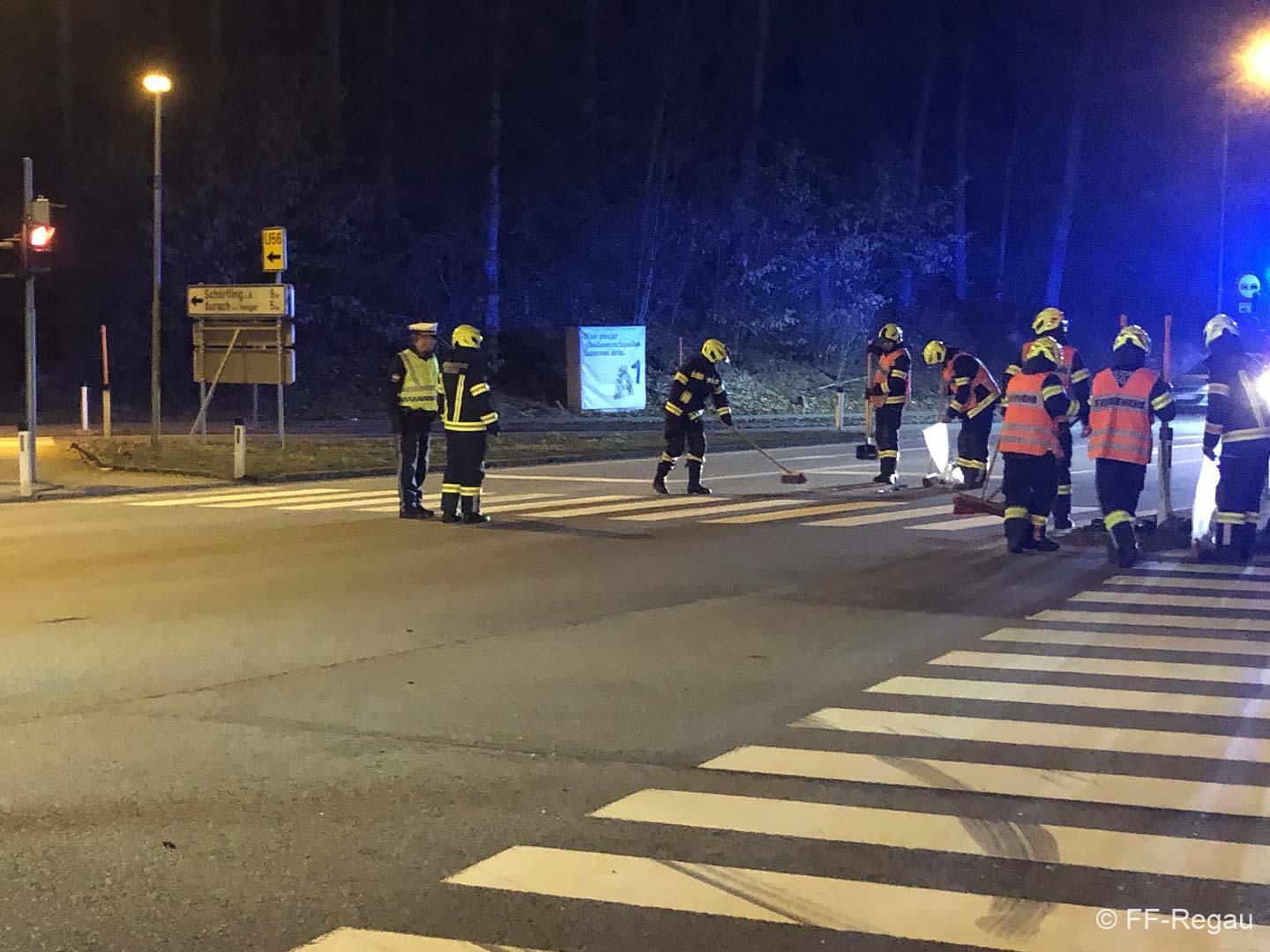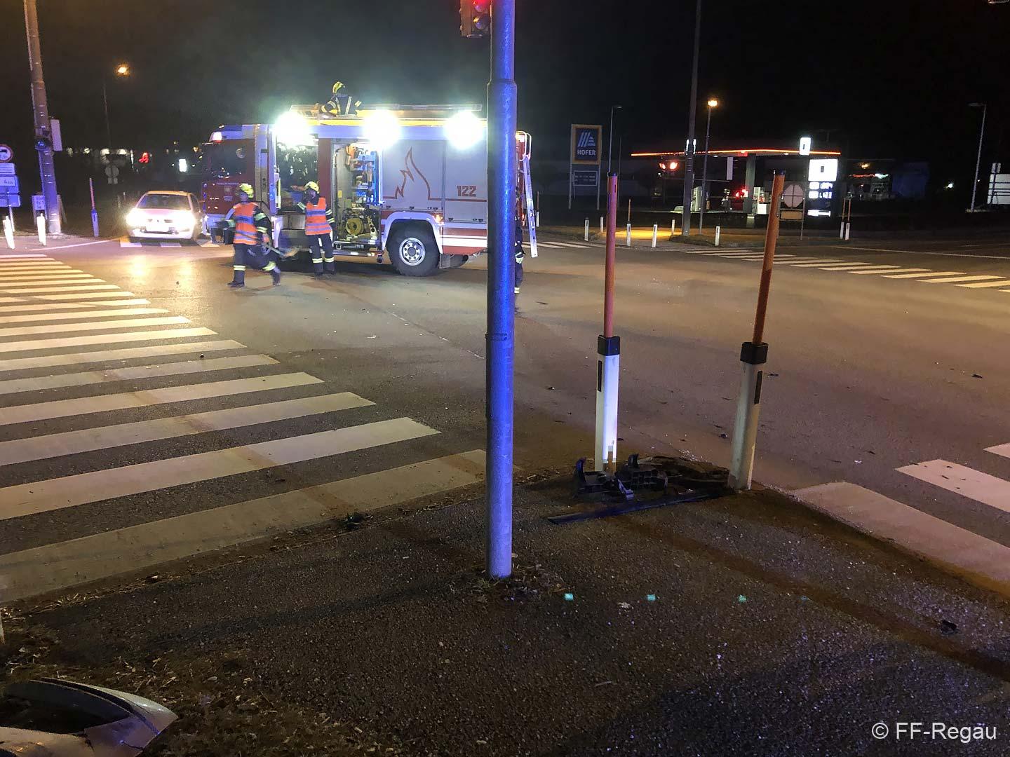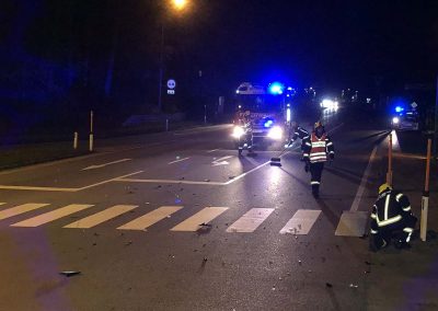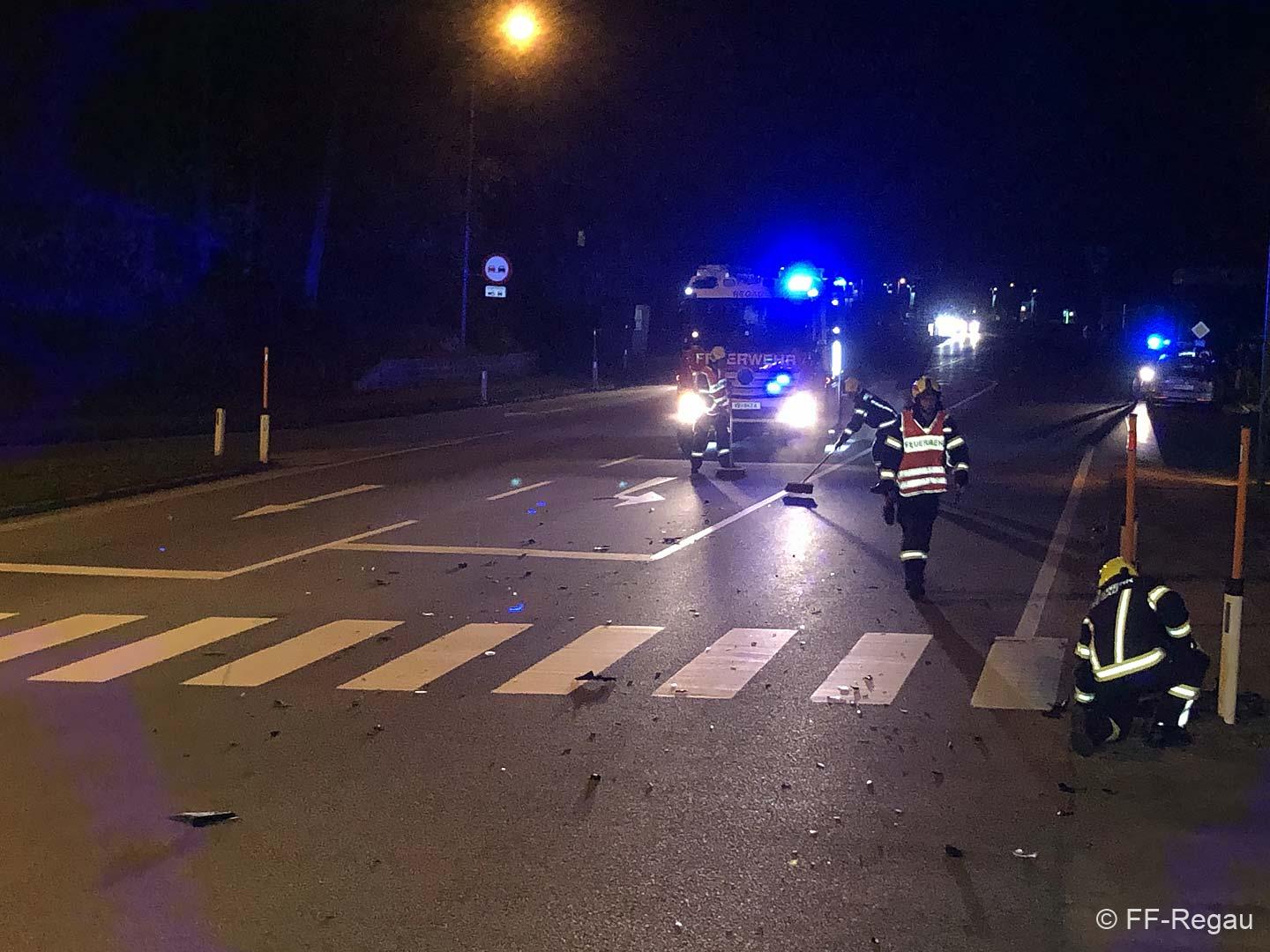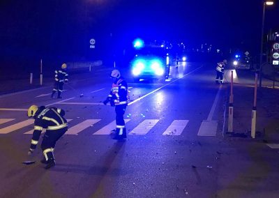 Kurz vor halb 10 Uhr abends kam die Alarmierung von der Polizei Vöcklabruck . Im Kreuzungsbereich waren aus bisher unbekannter Ursache zwei PKW zusammengestossen.