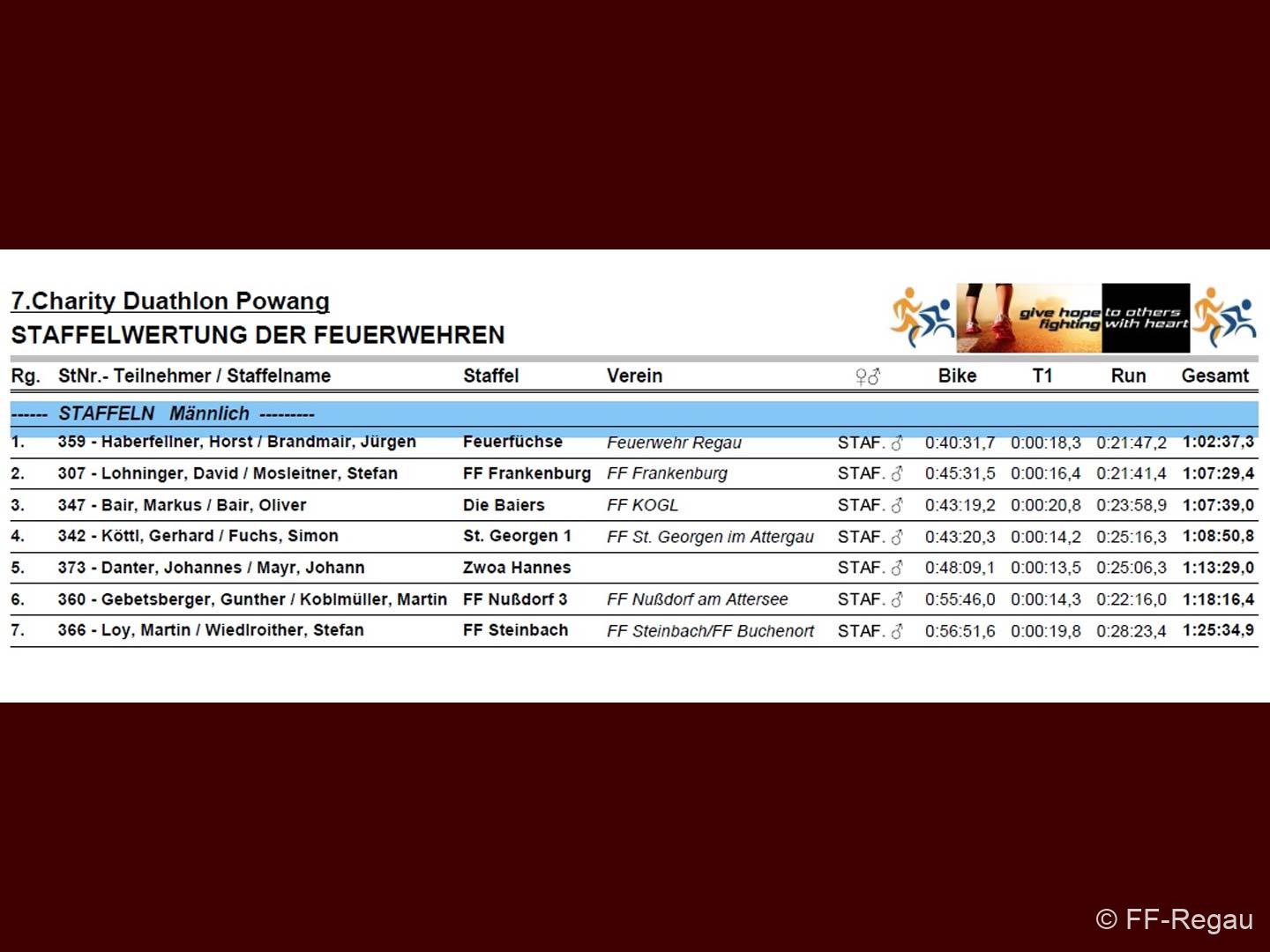 Regauer Feuerfüchse gewinnen Feuerwehrteamwertung beim 7. Charity Duathlon in Powang.
