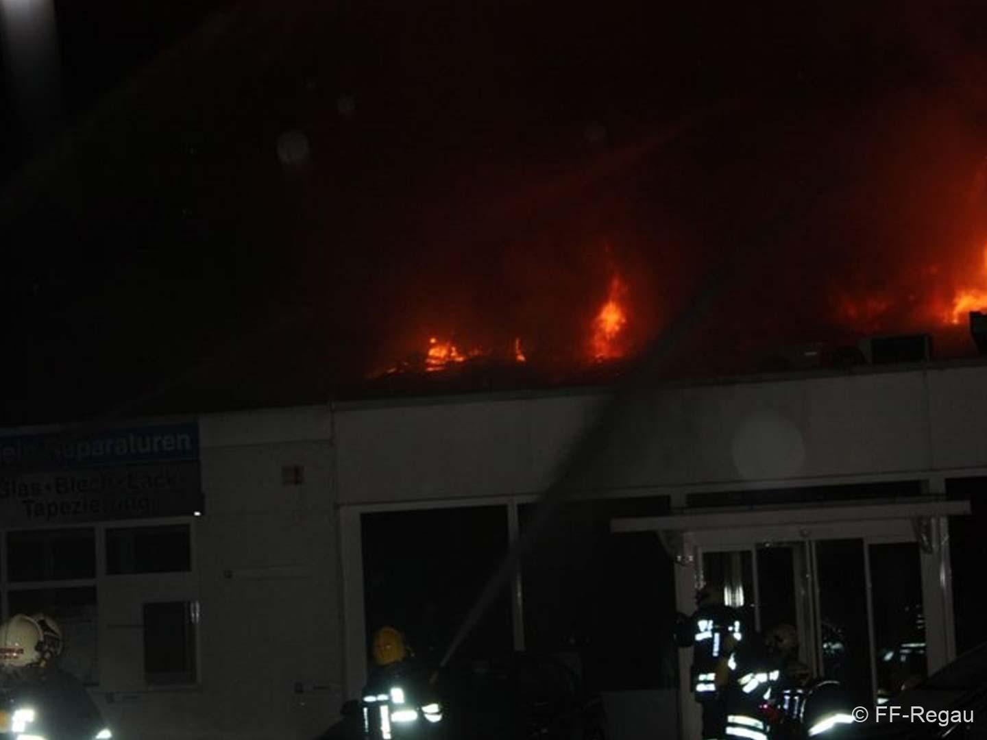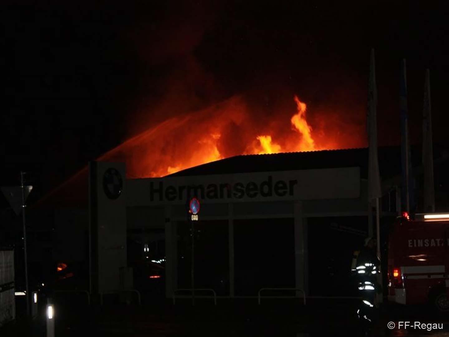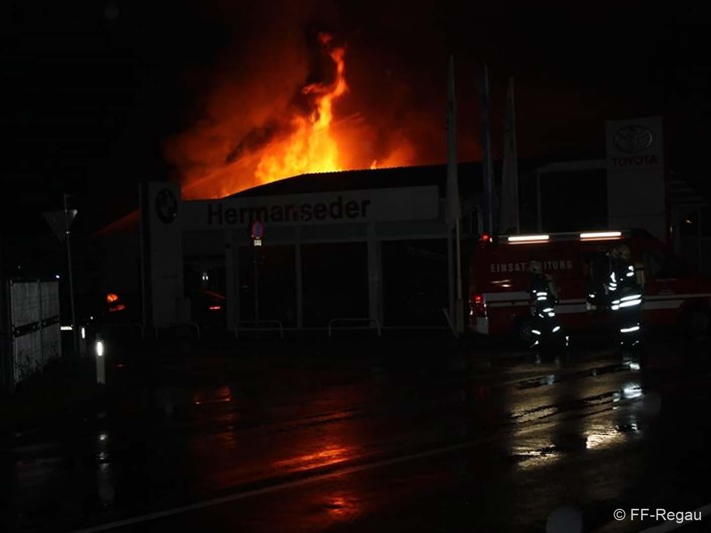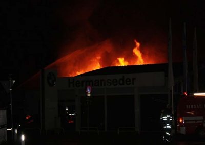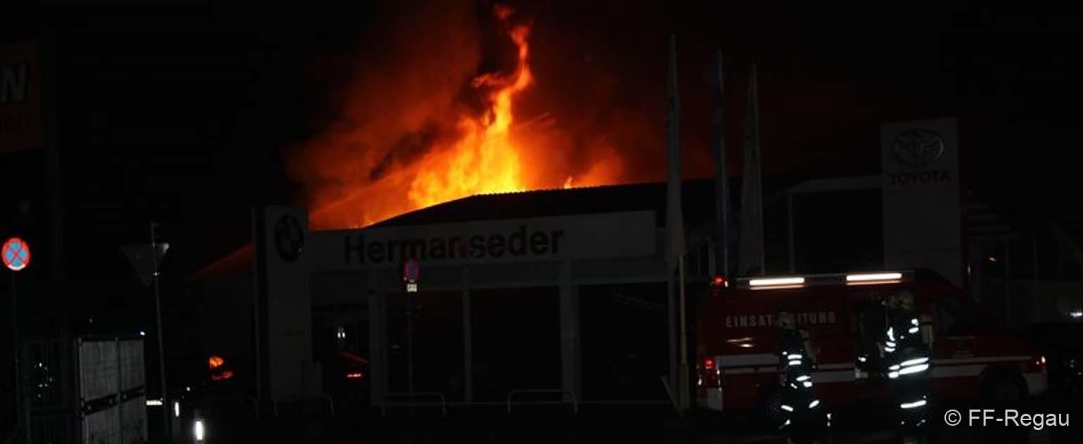 Großbrand im Autohaus Hermanseder in Vöcklabruck verursacht hohen Schaden.