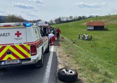 Die verletzten Unfallbeteiligten wurden vom Notarzt und vom Roten Kreuz versorgt.