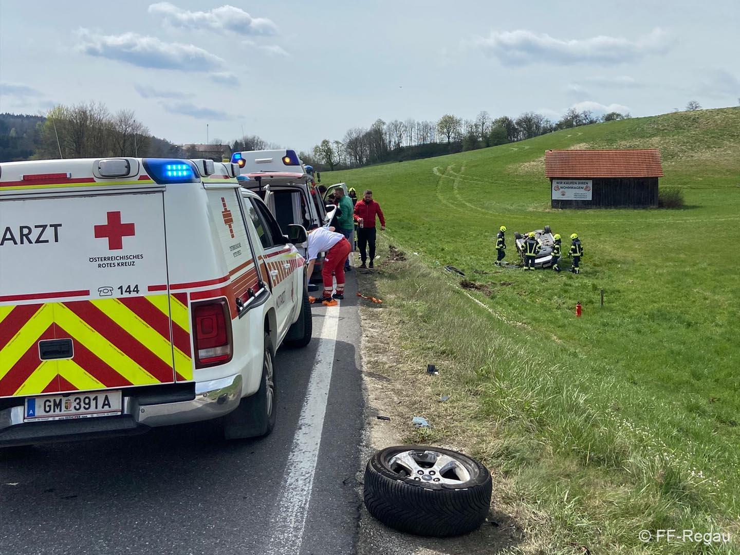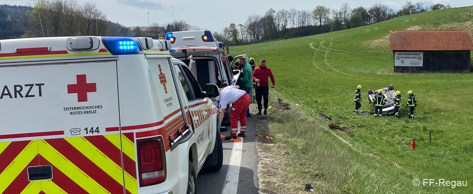 Zu einem Verkehrsunfall kam es am 17. April 2022 gegen 13:30 Uhr im Gemeindegebiet von Regau. Dabei fuhr ein 34-Jähriger aus dem Bezirk Vöcklabruck mit seinem Pkw auf der B 145 Richtung Vöcklabruck. Zeitgleich lenkte ein 49-Jähriger aus dem Bezirk Braunau seinen Pkw in die Gegenrichtung. Bei ihm im Fahrzeug befanden sich seine 41-jährige Lebensgefährtin und die beiden Kinder, 13 und fünf Jahre alt. Aus noch ungeklärter Ursache kam es zum Frontalzusammenstoß, bei dem der 34-Jährige seinen Wagen verriss, über die Böschung stürzte und sich überschlug. Sein Auto kam auf dem Dach zum Liegen und er konnte sich selbstständig befreien. Er erlitt Verletzungen unbestimmten Grades und wurde ins Krankenhaus Vöcklabruck eingeliefert. Der 49-Jährige erlitt leichte Verletzungen an der rechten Hand und wurde ebenfalls ins Krankenhaus Vöcklabruck gebracht. Seine Lebensgefährtin und die beiden Kinder blieben unverletzt.
