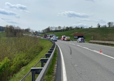 Wie schon am Beginn dieser Woche, wurden wir und die FF Rutzenmoos wieder zu einem Verkehrsunfall mit eingeklemmter Person alarmiert. Um 14 Uhr erreichte uns am Ostersonntag der Alarm.