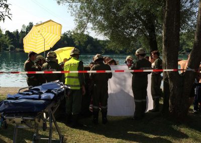 Vor der Ausfahrt wurde von uns der Taucherstützpunkt alarmiert. Beim Eintreffen am Einsatzort konnten wir feststellen das die zu rettende Person von anderen Badegästen bereits geborgen wurde und das vor uns eingetroffene Notarztteam bereits mit der Reanimation begonnen hatte. Daraufhin wurde die Einsatzbereitschaft des Taucherstützpunktes wieder aufgehoben. In Zusammenarbeit mit der Polizei Vöcklabruck schiermten wir den Einsatzbereich von den übrigen Badegästen ab. Beim Abtransport des Verunfallten unterstützten wir das Notarztteam, reinigten anschliessend noch den Einsatzbereich und konnten um 18:30 Uhr wieder ins Feuerwehrhaus einrücken.