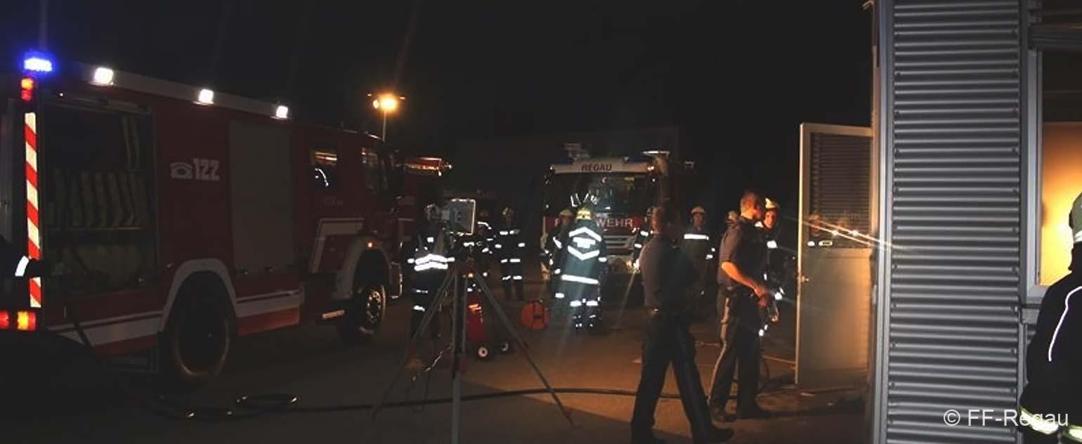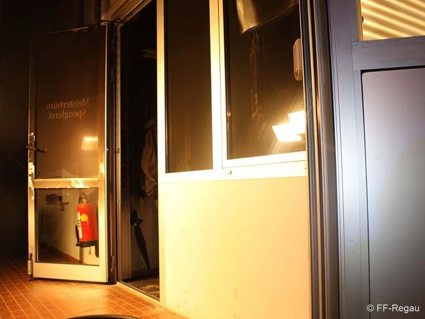 Passant entdeckt Feuerschein und alarmiert Feuerwehr. Kurz nach 20 Uhr entdeckte am Abend des 17. August ein Passant einen Feuerschein in einem Büro der Fa. Pappas.