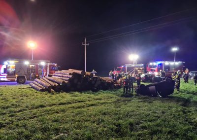 PKW prallte gegen Holzstoss und hat sich überschlagen!