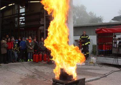 Schließlich durfte aber jeder Schüler selber mal ran und dem Umgang mit einem Handfeuerlöscher praktizieren. Bestens unterstützt wurden sie dabei von unserem Kommandanten, der hauptberuflich zertifizierter Brandschutzberater ist.