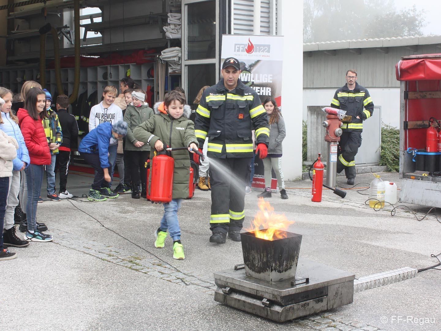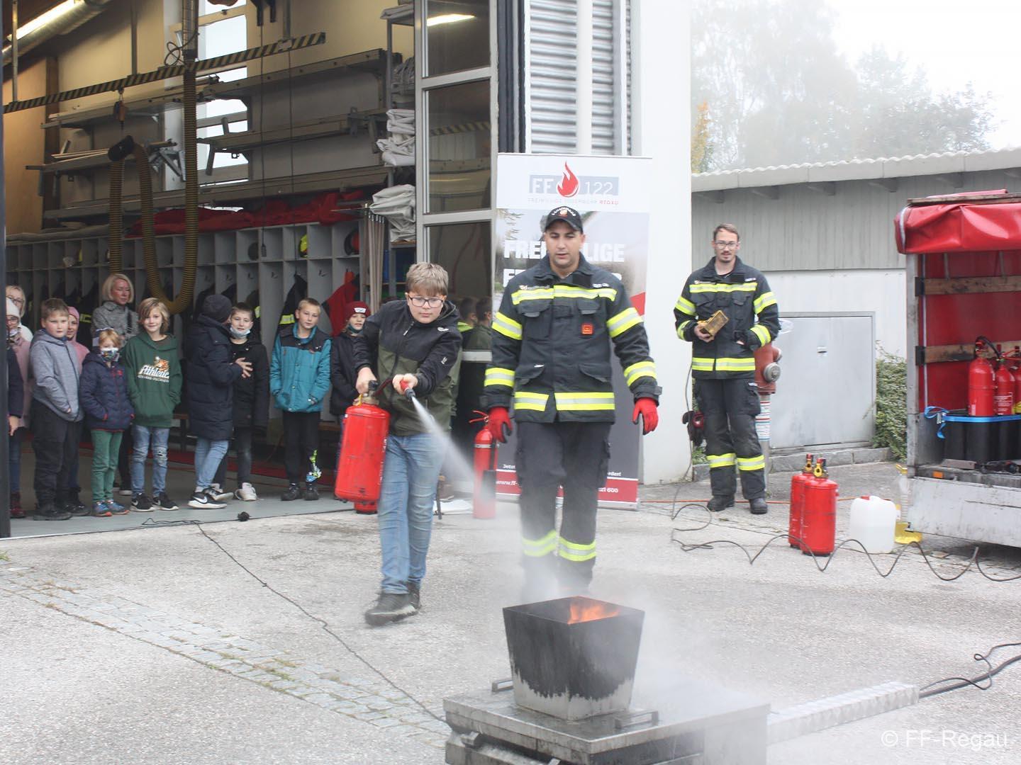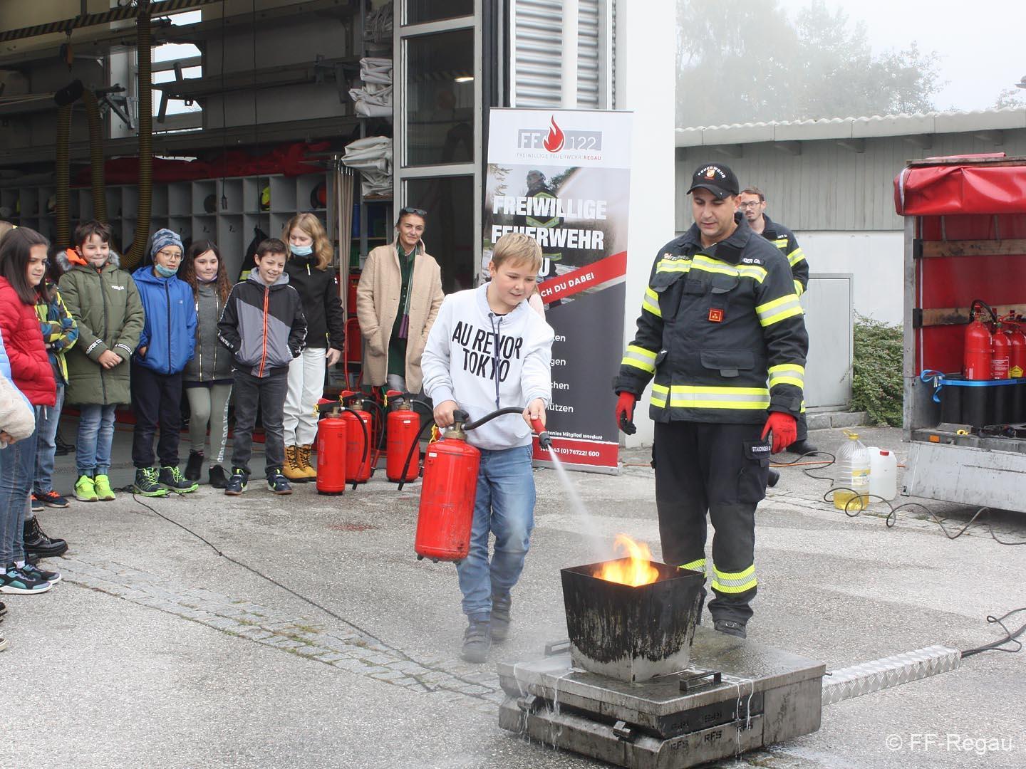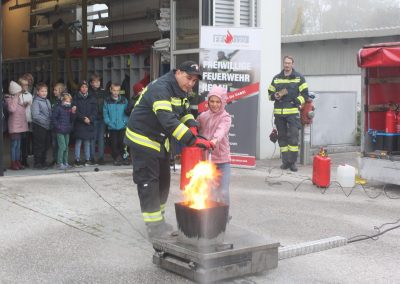 Im Rahmen „Gemeinsam.Sicher.Feuerwehr“ haben die Schüler den Umgang mit Handfeuerlöschern geübt und kennen gelernt!