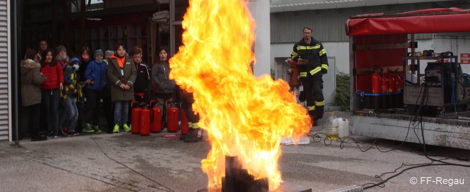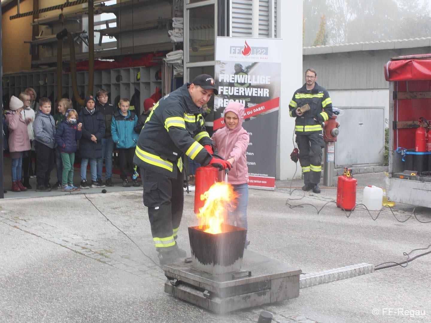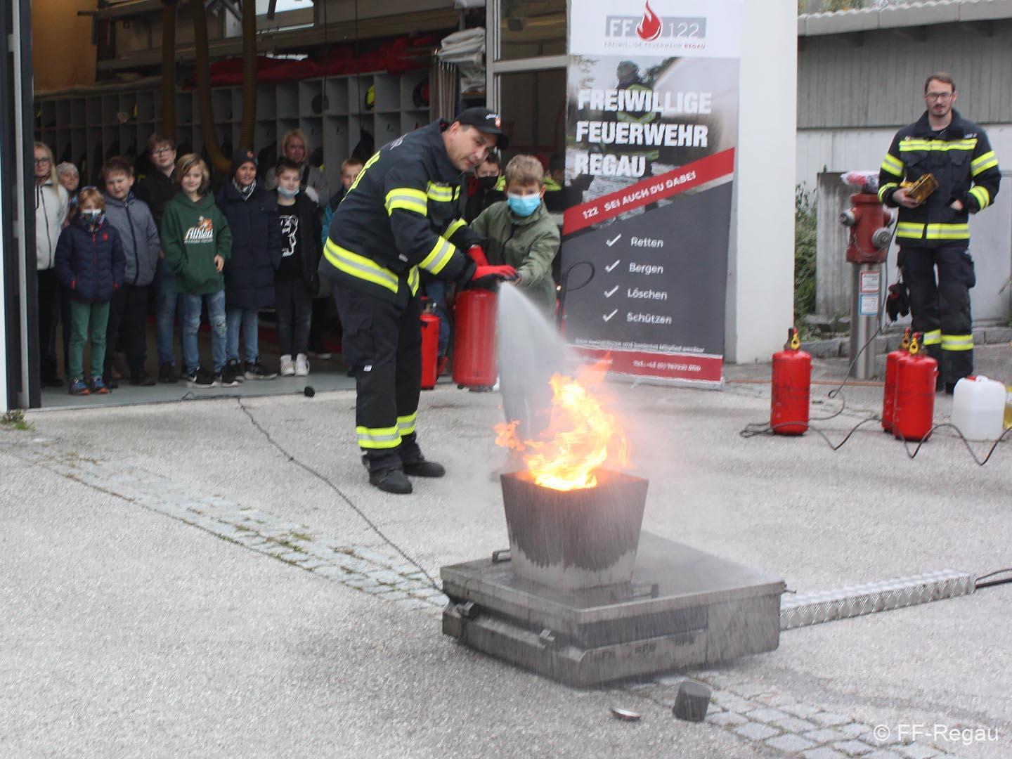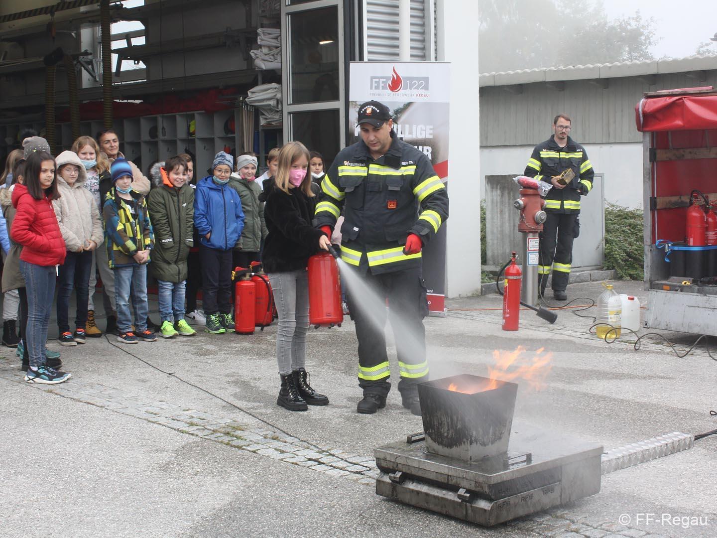 Im Rahmen „Gemeinsam.Sicher.Feuerwehr“ haben die Schüler den Umgang mit Handfeuerlöschern geübt und kennen gelernt!