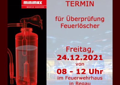 Aufgrund der dzt. Bestimmungen bringen Sie bitte den Feuerlöscher morgens (ab 8 Uhr) ins Feuerwehrhaus und holen ihn gegen Mittag wieder ab.