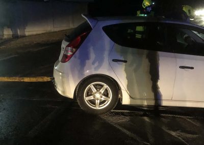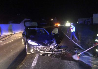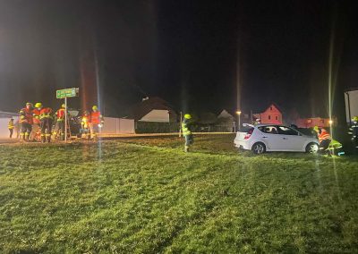 Das Unfallauto auf der Straße konnte von uns weggeschoben werden, während das andere Fahrzeug mittels Seilwinde geborgen wurde.