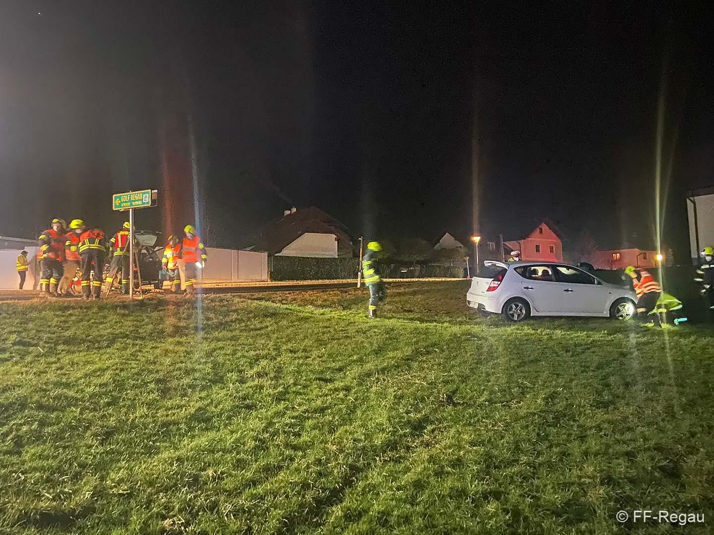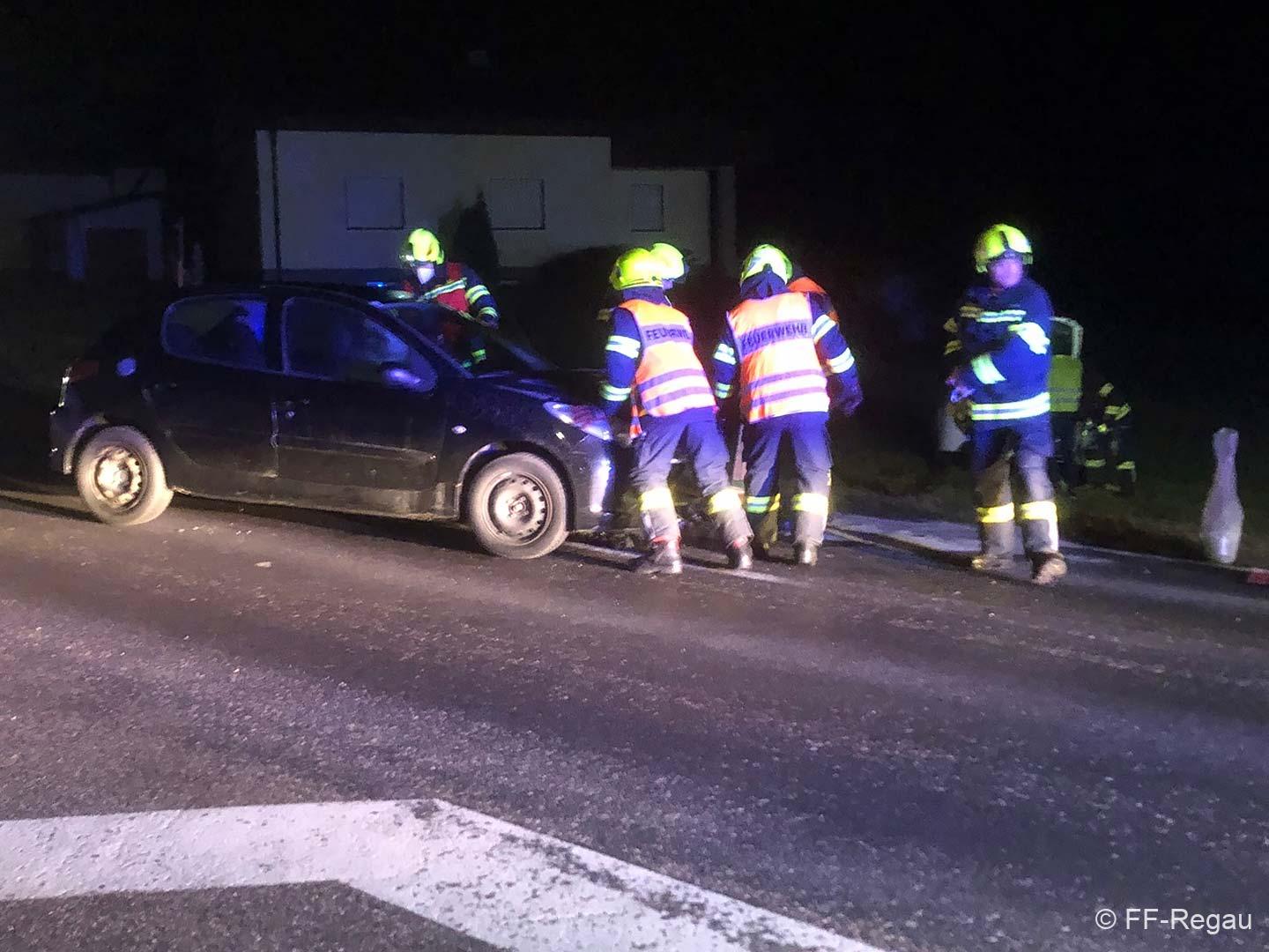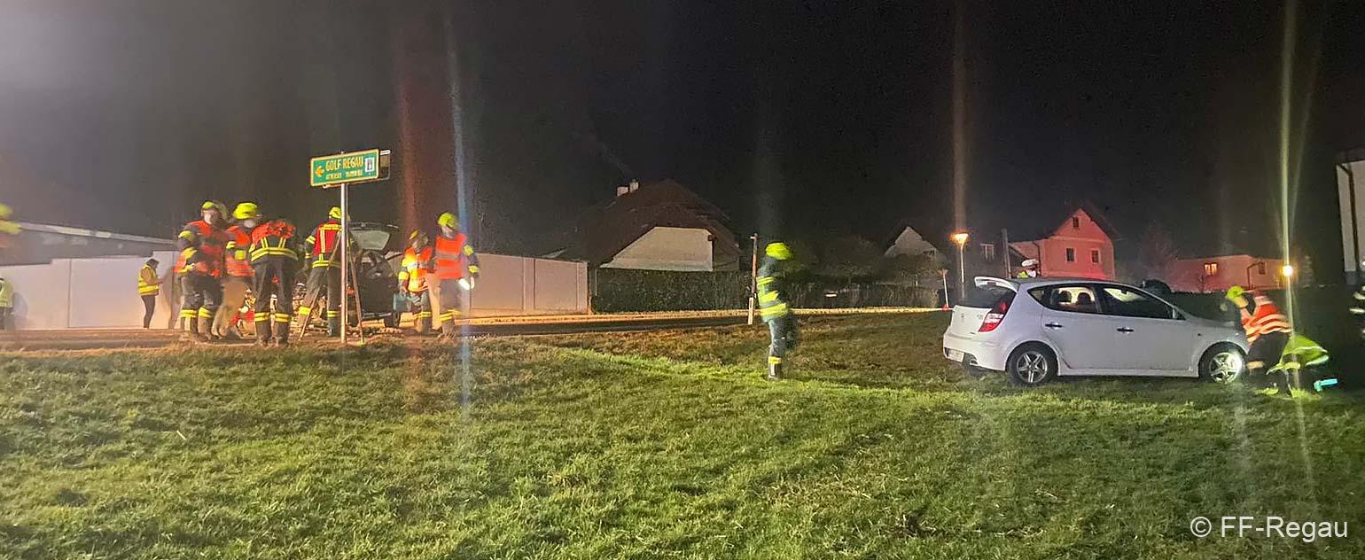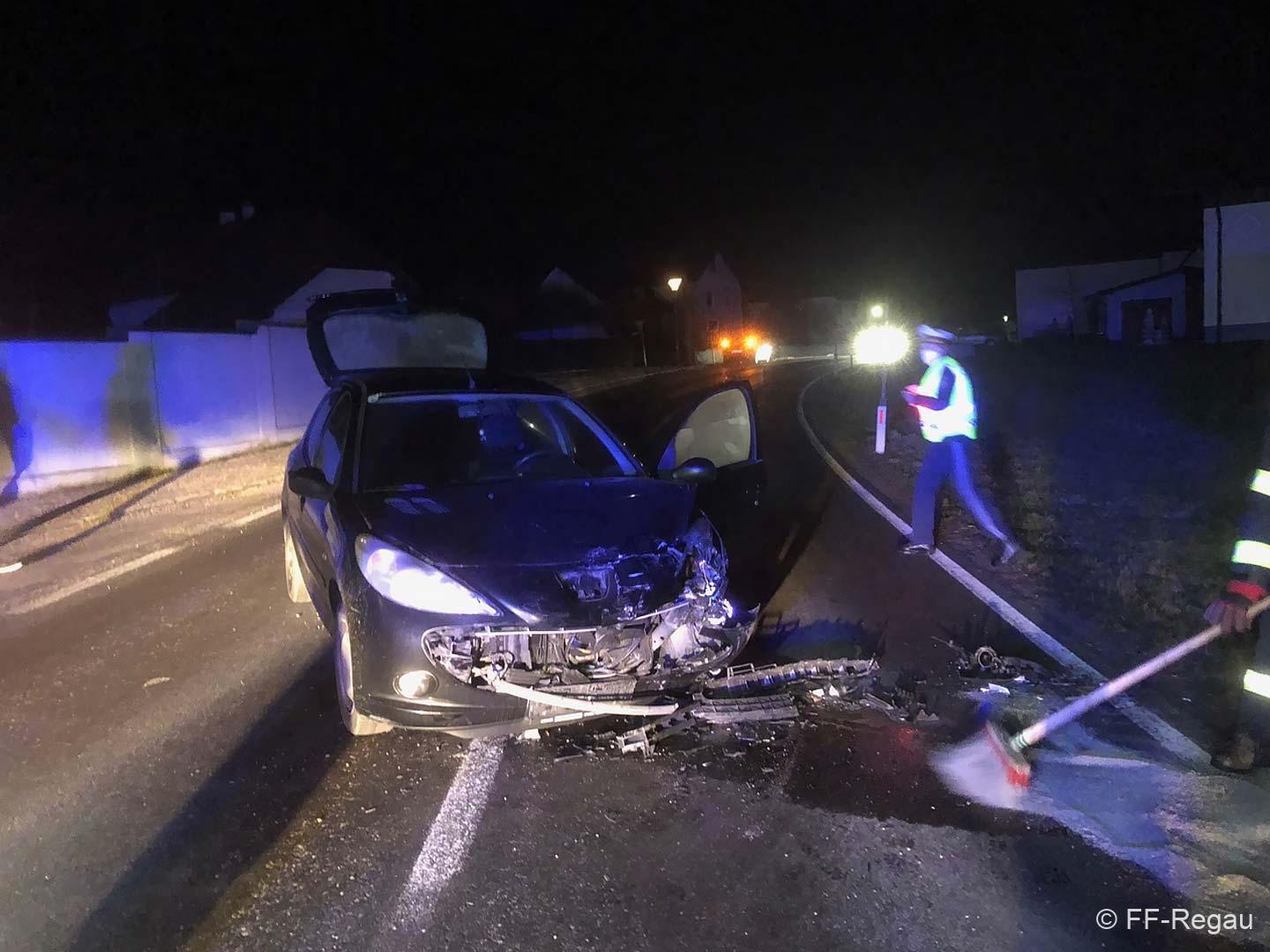 Hier waren im Bereich der Abzweigung nach Pürstling zwei PKW zusammengestossen, wobei eines der Fahrzeuge in der angrenzenden Wiese landete.