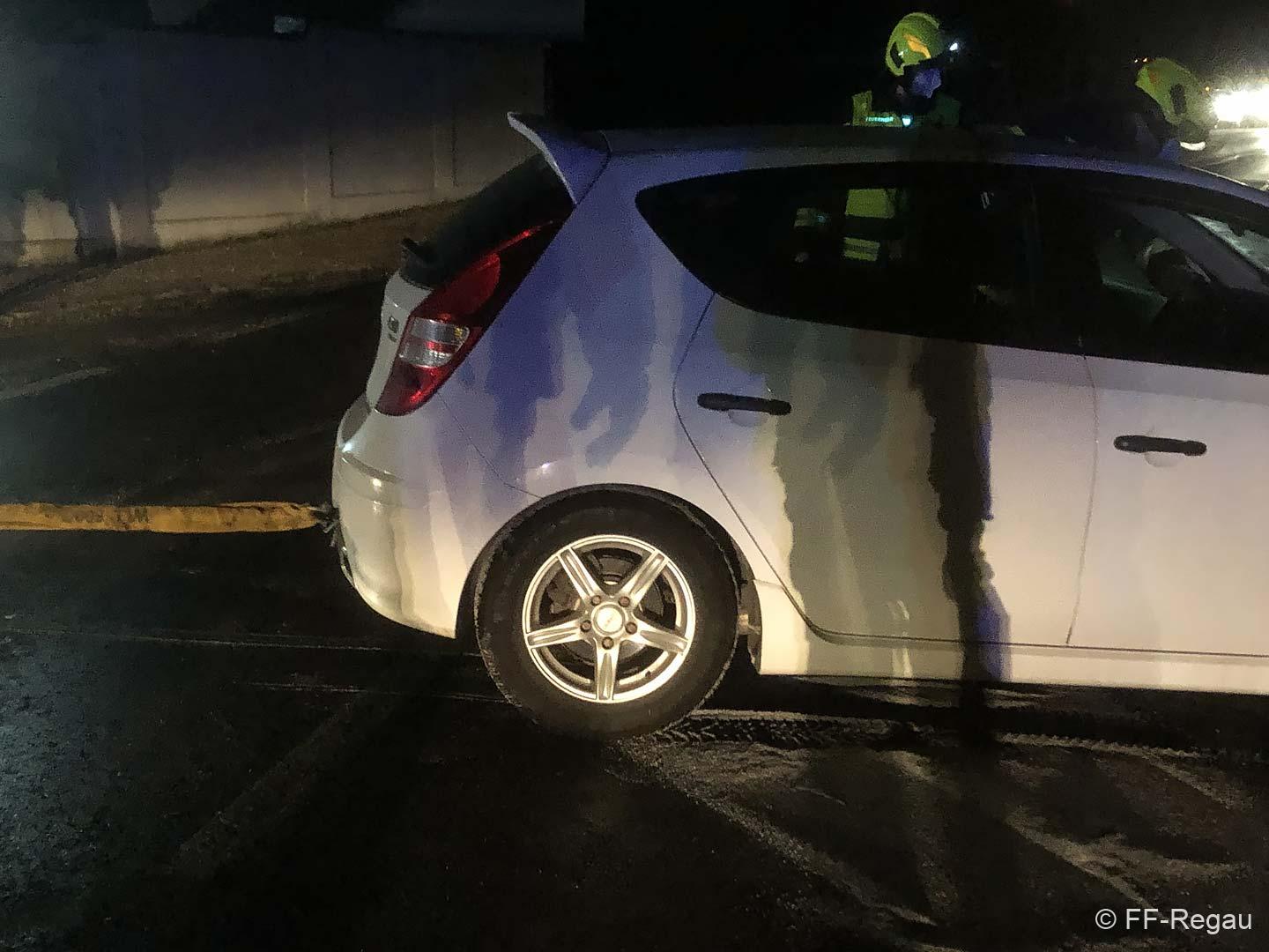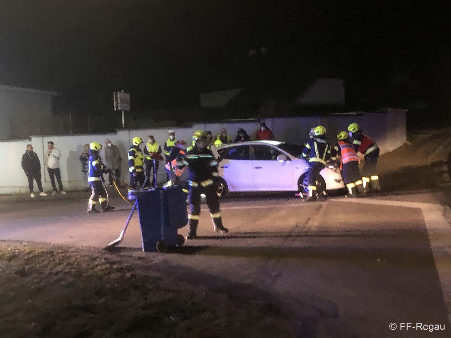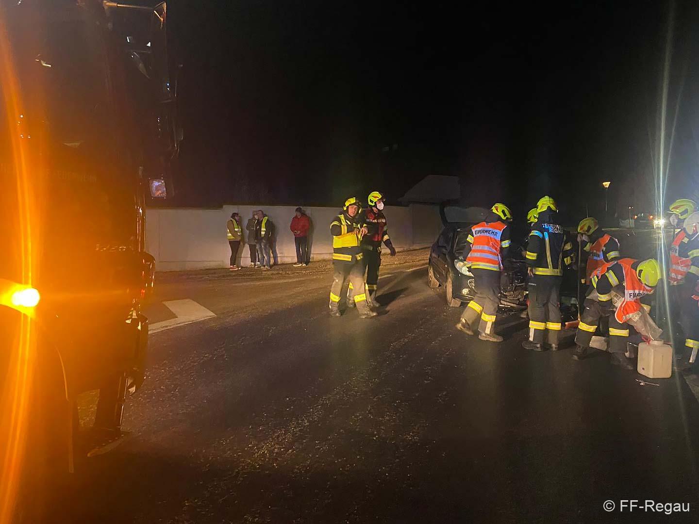 Hier waren im Bereich der Abzweigung nach Pürstling zwei PKW zusammengestossen, wobei eines der Fahrzeuge in der angrenzenden Wiese landete.