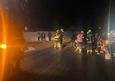 Dann wurde noch die Straße von herumliegenden Teilen gesäubert und ausgeflossene Flüssigkeiten gebunden und entsorgt.
