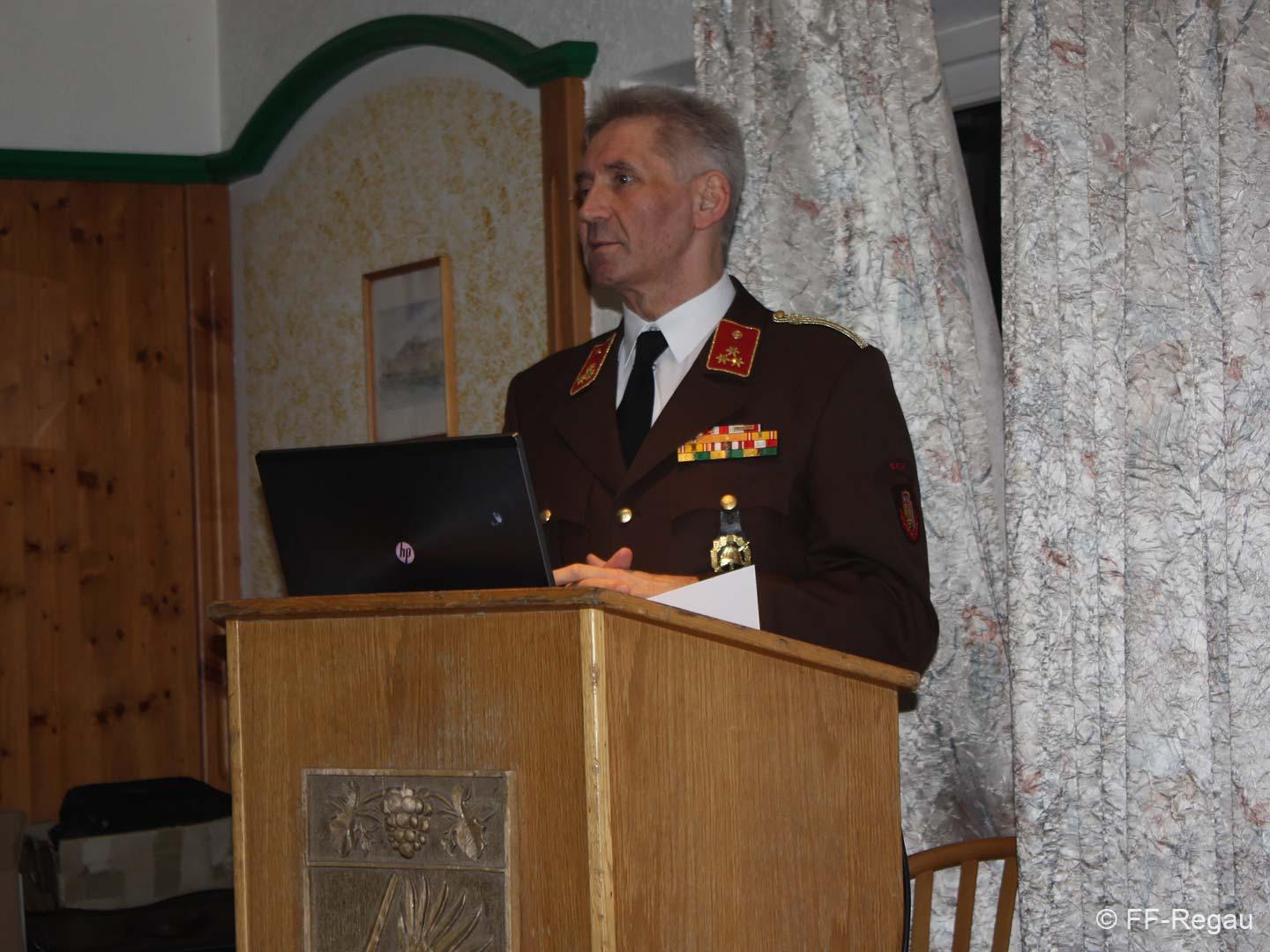 Breiten Raum widmete die FF Regau neben all ihren Einsätzen auch wieder dem vorbeugenden Brandschutz, also der Aufklärung der Bevölkerung darüber, wie sie sich verhalten muss, damit die Feuerwehr erst gar nicht gebraucht wird. Ein besonders aufmerksames Publikum lauschte etwa im Seni0orenzentrum Regau den Ausführungen von Kommandant HBI Ernst Staudinger.