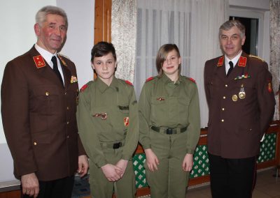 Anlass zur Freude gibt hingegen die hoch motivierte Jugendgruppe, die heuer ihr 10-jähriges Bestehen feiern kann. 17 Aktive sind in diesem Zeitraum bereits aus ihr hervorgegangen. Auch heuer wurden zwei Jugendliche angelobt und in die Jugendgruppe aufgenommen, und zwar Magdalena Stiedl und Marco Bachmair.