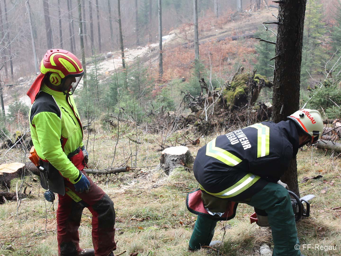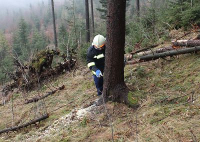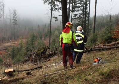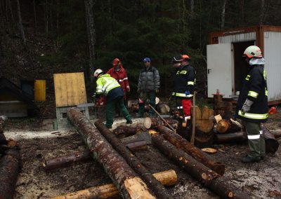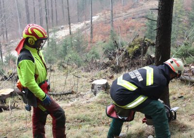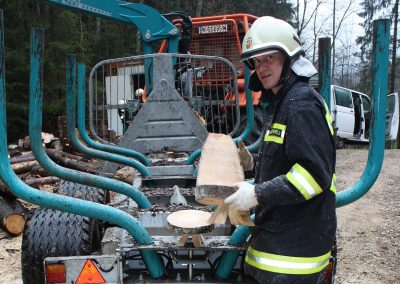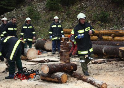Nach einem Trainingsprogramm am Vormittag von den richtigen Schnitttechniken bis hin zum Verspannungsgerät, ging es dann nach der Mittagspause Richtung Hochlecken. In einem Waldgebiet der Bundesforste durften unsere Kameraden ihr können dann beim Abholzen gleich probieren.