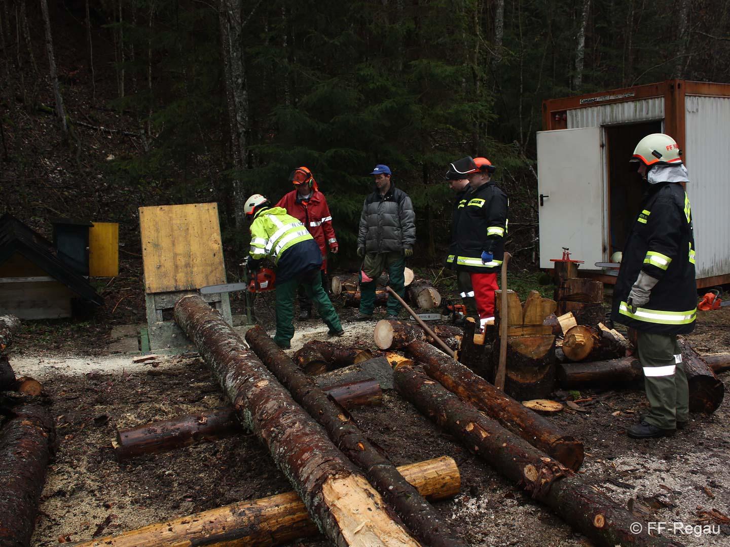 Nach einer theoretischen Schulung am Montag durch Herrn FOL Franz Plasser, folgte am Samstag dann der praktische Teil der Motorsägenschulung in Neukirchen bei Altmünster.