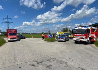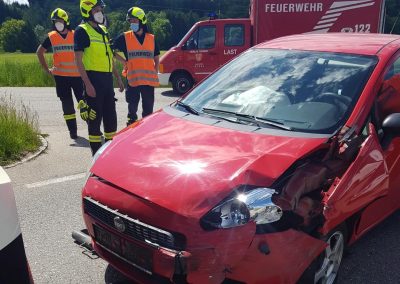 Nach einer Kollission von zwei Fahrzeugen im Kreuzungsbereich haben wir die Straße von herumliegenden Teilen und ausgeflossenen Betriebsmitteln gesäubert und gereinigt.