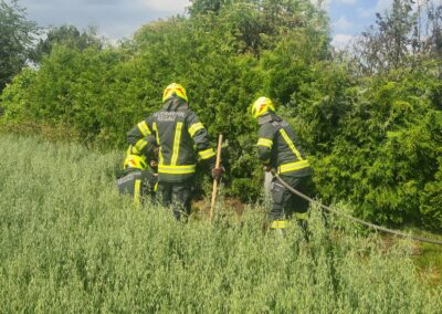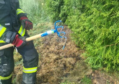 Dort hatte sich kompostierter Grünschnitt selbst entzündet. Der Eigentümer konnte den Brand mittels zweier Handfeuerlöscher bis zu unserem Eintreffen größtenteils selbst ablöschen und so größeren Schaden verhindern. Von uns wurden in weiterer Folge nachlöscharbeiten durchgeführt, der Kompost ausgeräumt und mittels Wärmebildkamera der Bereich kontrolliert. So konnte nach kurzer Zeit unser Einsatz wieder beendet werden.