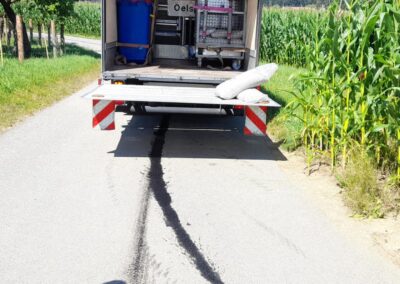 Mit Bindemittel wurde das Öl gebunden und mit Bioversal die Straße anschließend gereinigt.