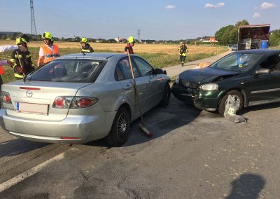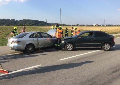 Wieder haben wir die Aufräumarbeiten durchgeführt.Es wurden herumliegende Teile von der Fahrbahn beseitigt, die Unfallfahrzeuge aus dem Gefahrenbereich gebracht und ausgeflossene Schmiermittel gebunden. Um die verletzten Personen kümmerte sich das Rote Kreuz. Während der Aufräumarbeiten wurde der Verkehr lokal umgeleitet.
