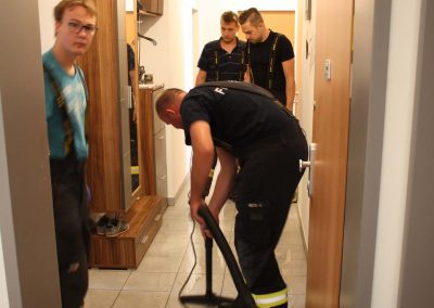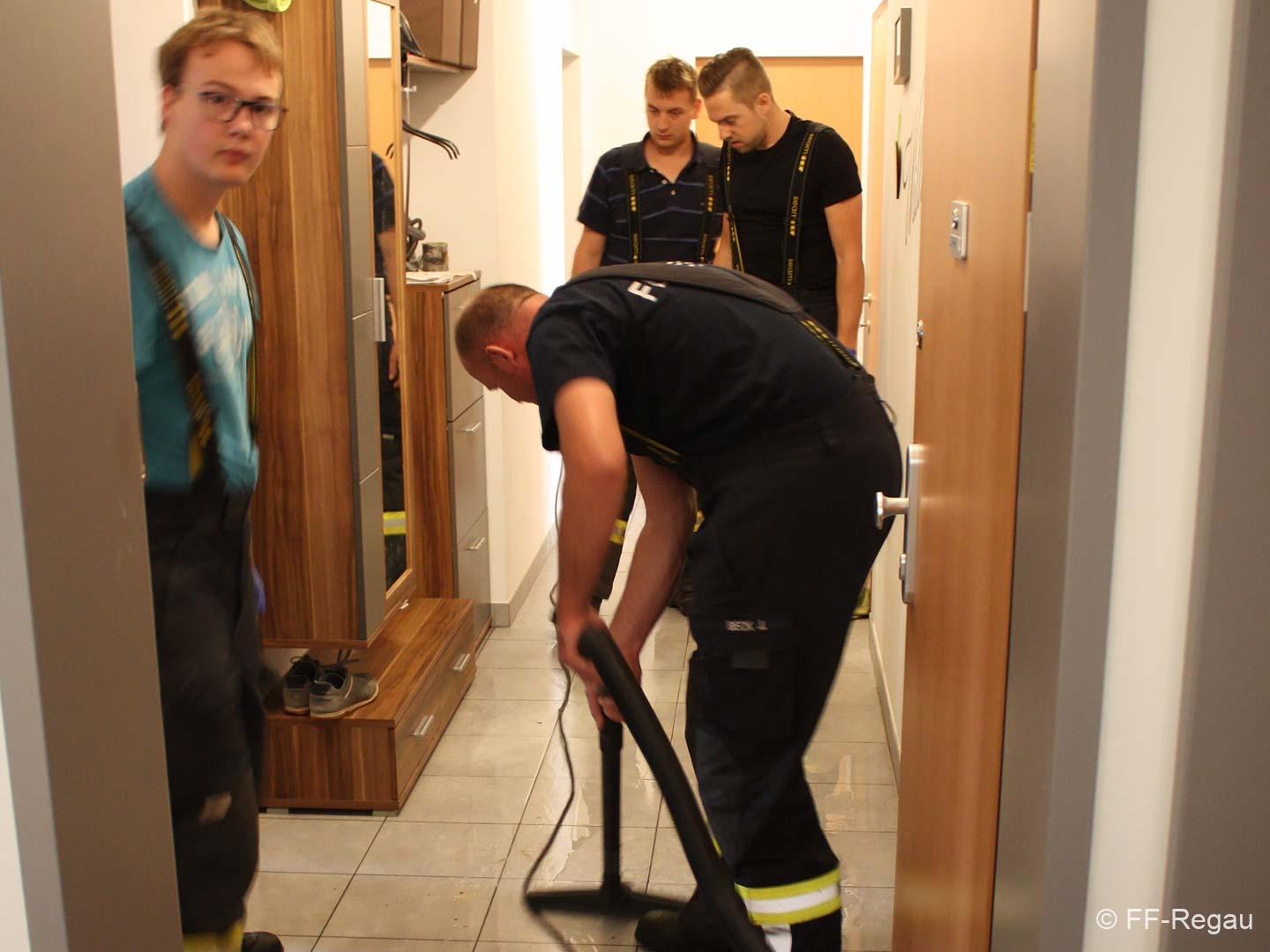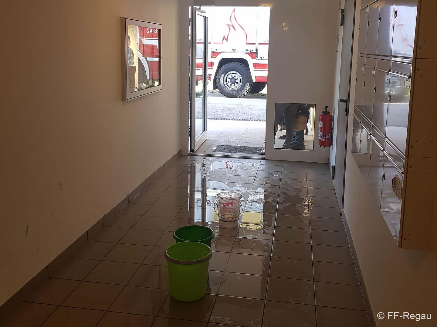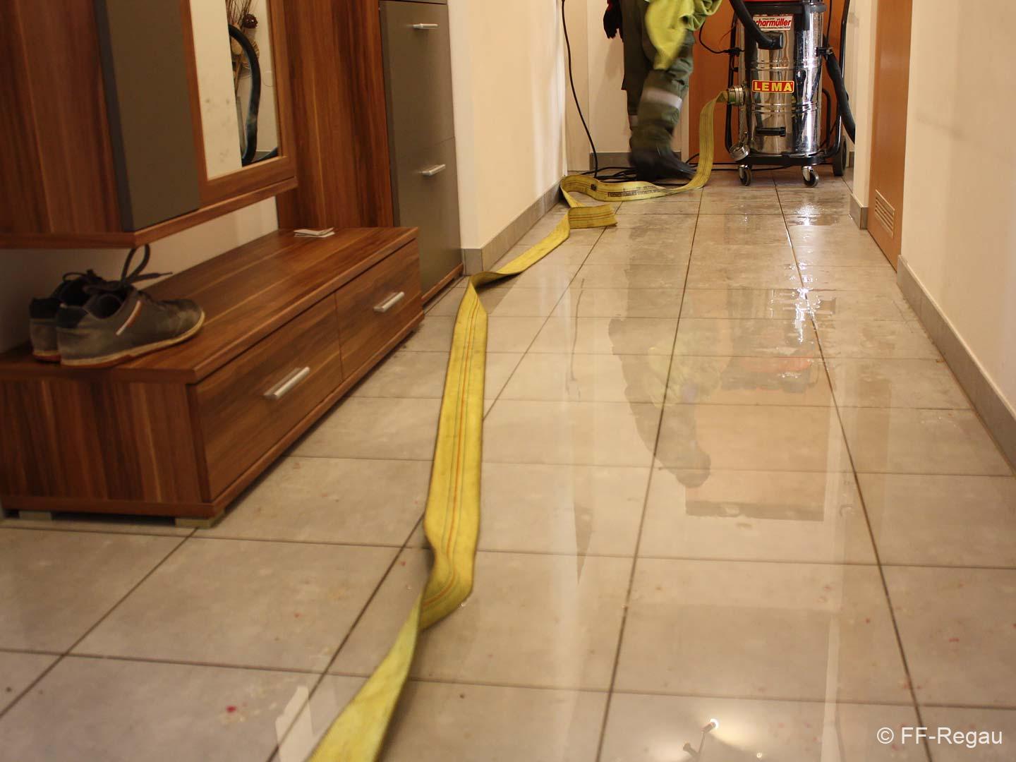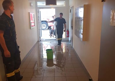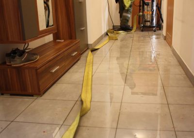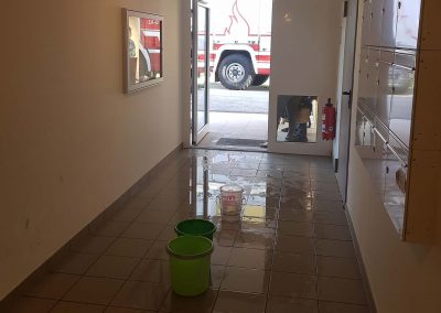 Wir haben dann die Wohnung und das angrenzende Stiegenhaus vom Wasser befreit und soweit gereinigt.