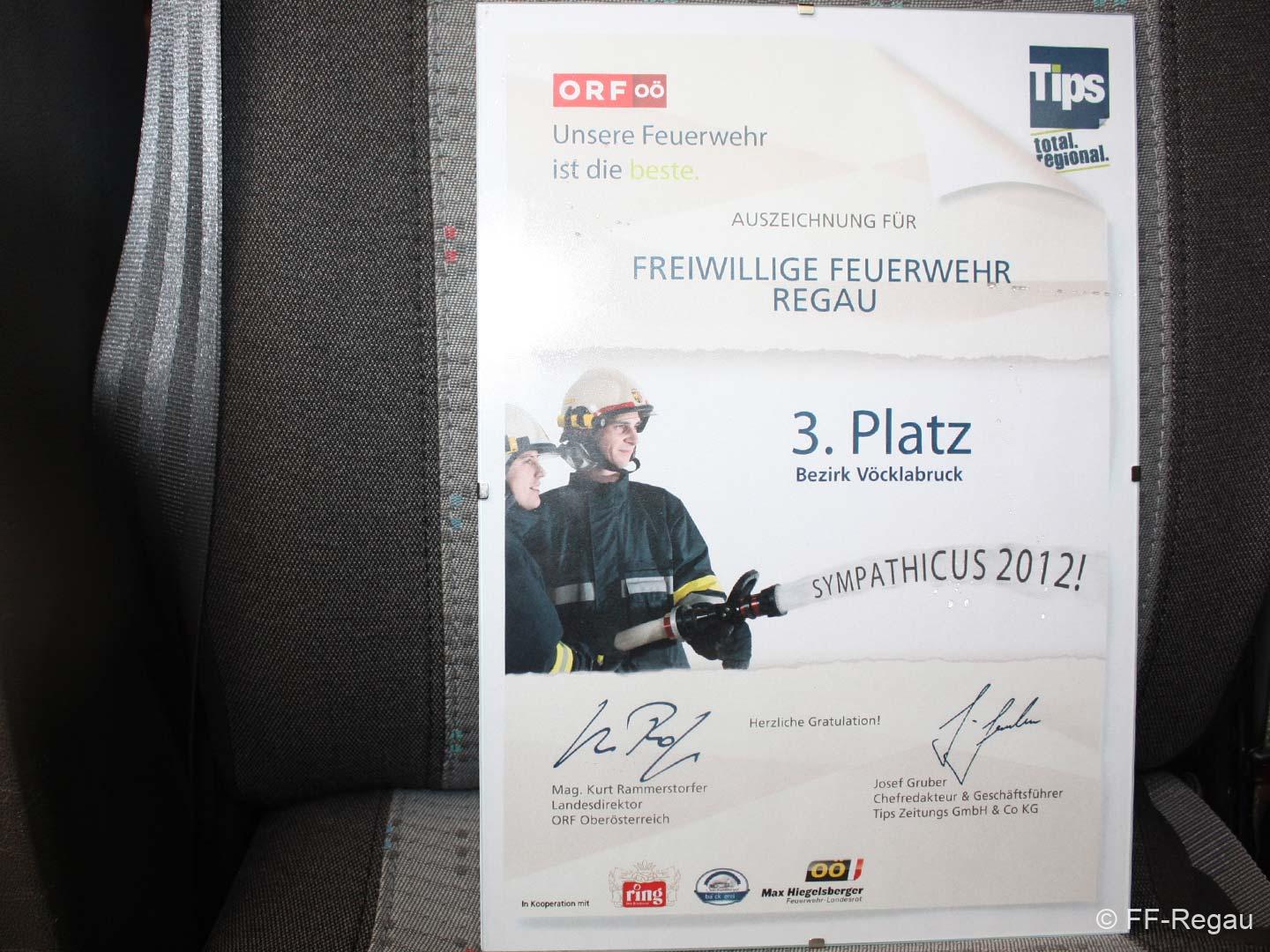 Kommandant HBI Ernst Staudinger wurde am 22.05.2012 im ORF Landesstudio in Linz im Rahmen der Bezirkssiegerehrung eine Urkunde für den 3. Platz überreicht.