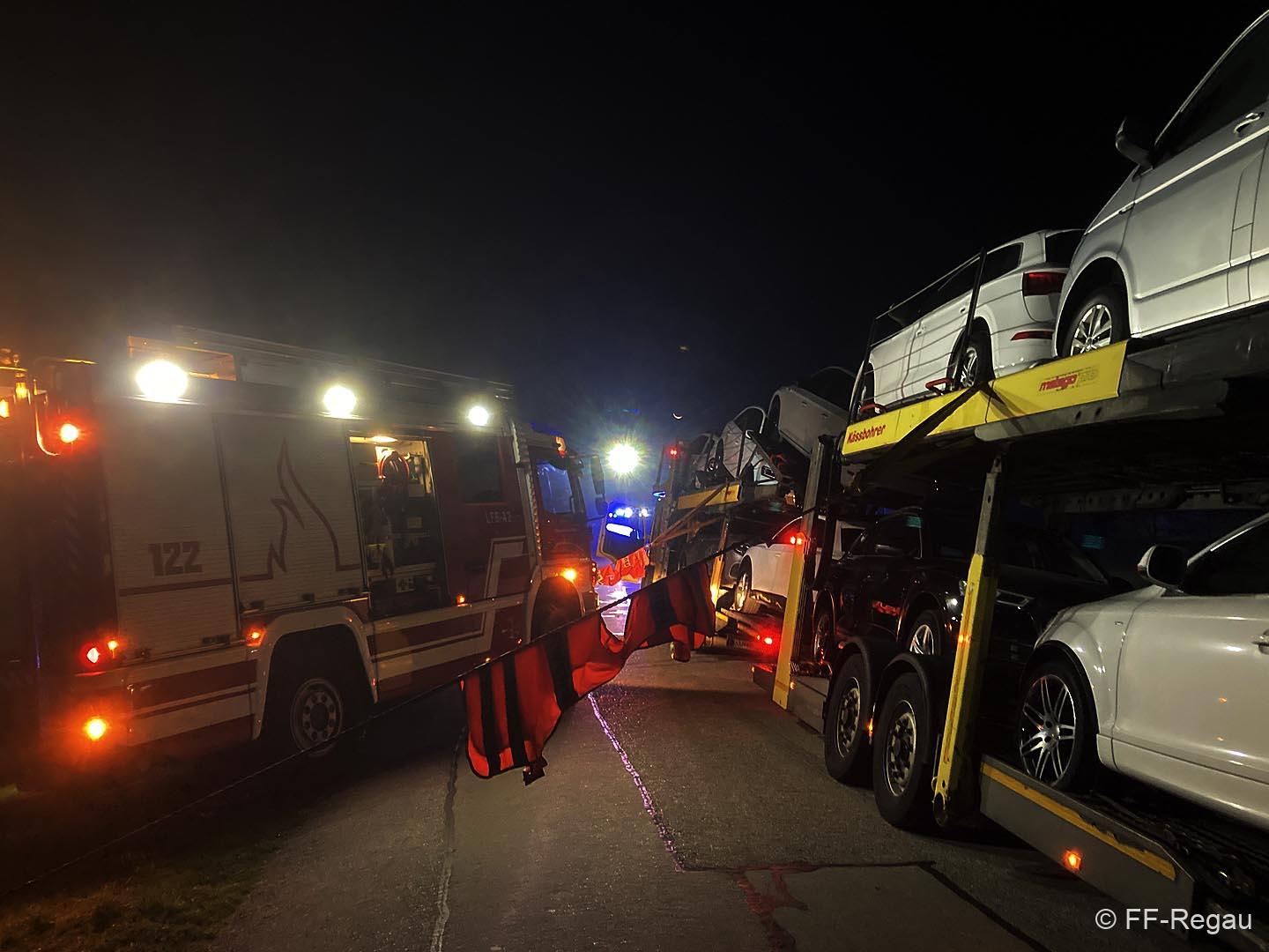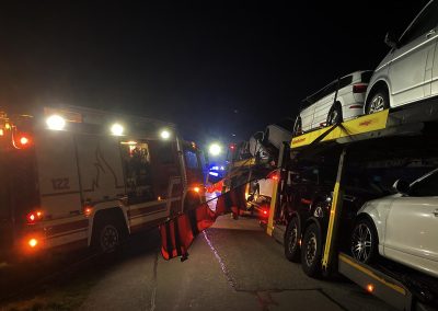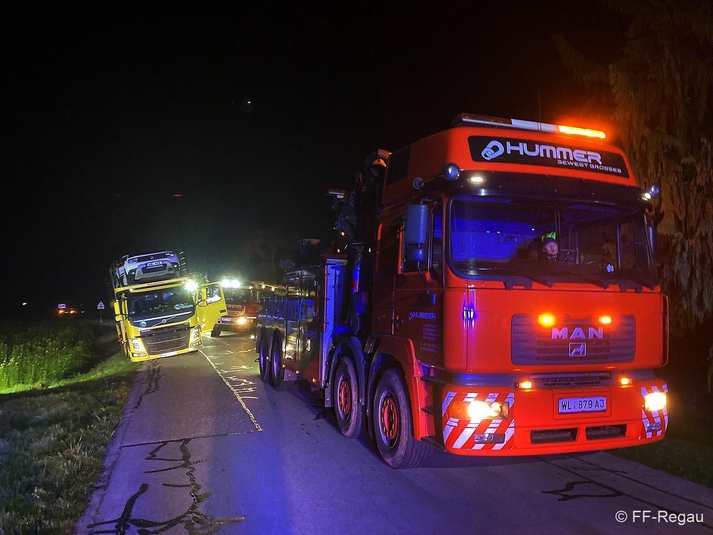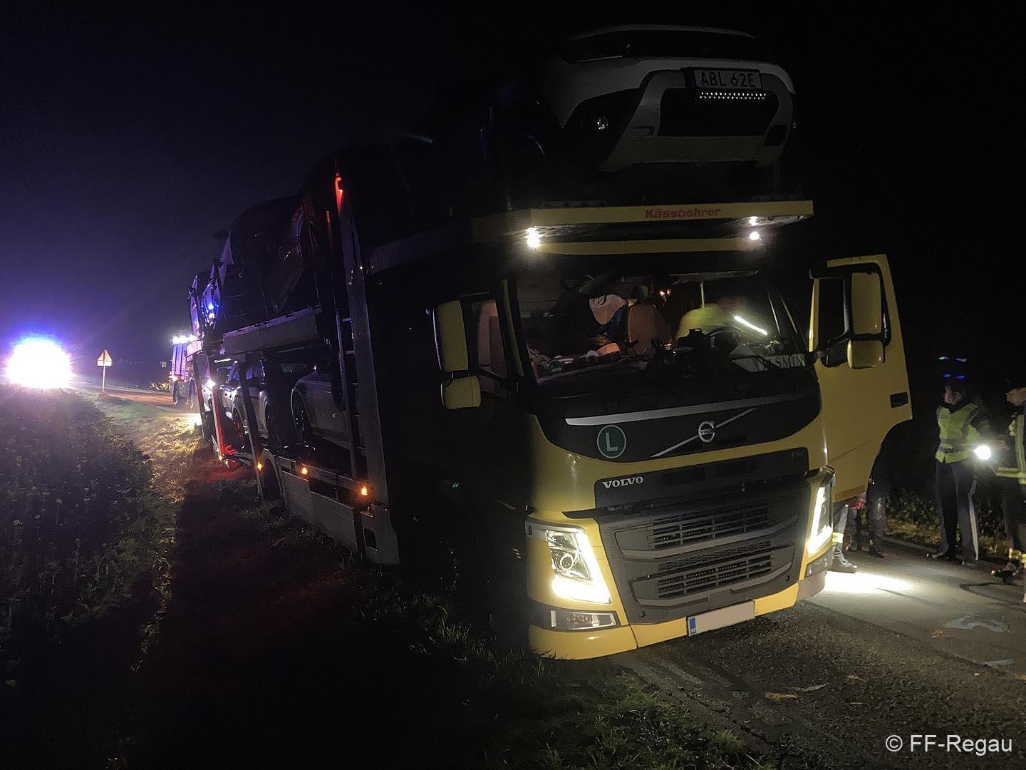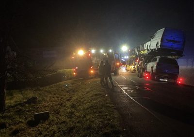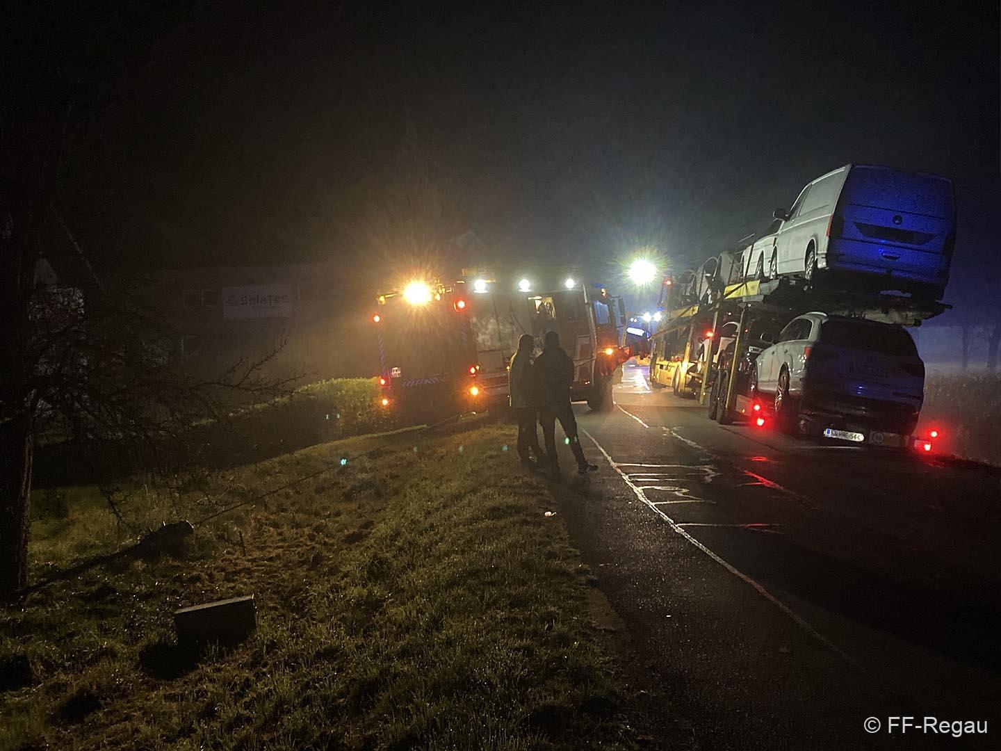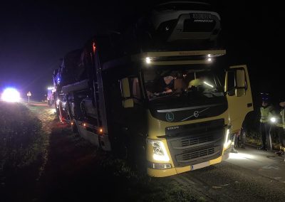 Um 02:18 wurden wir heute Samstag mit dem Text „Autotransporter steckt in der Wiese“ von der Landeswarnzentrale alarmiert.