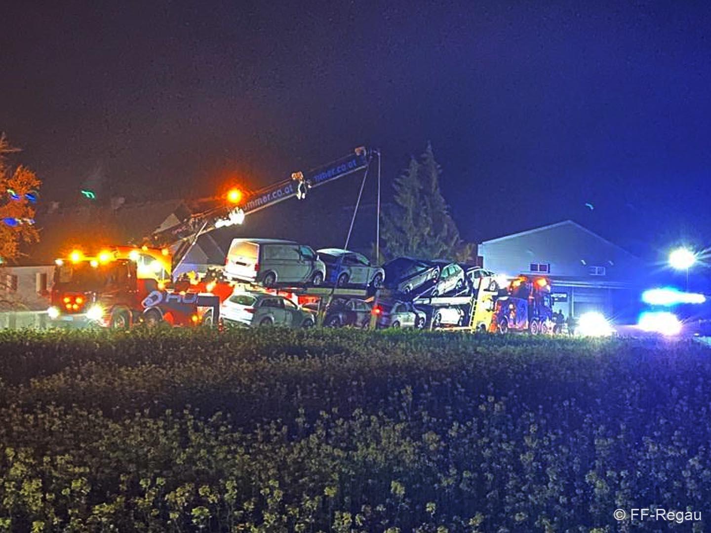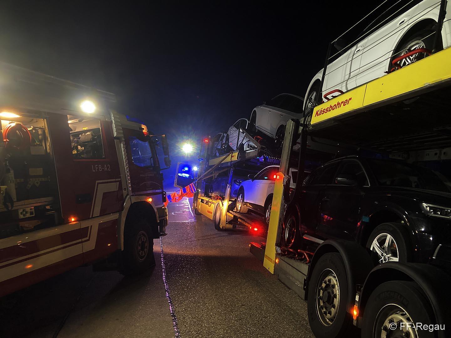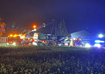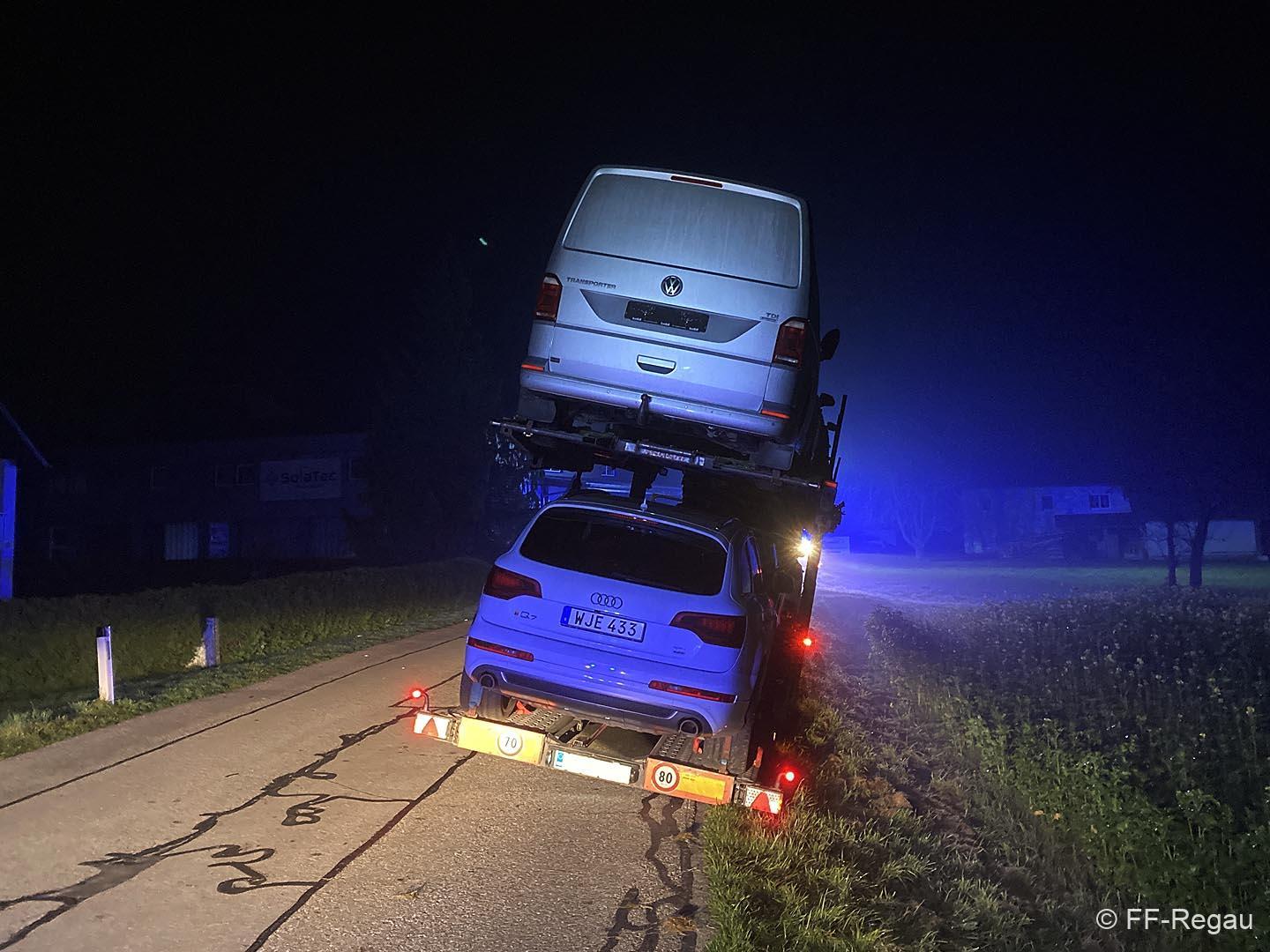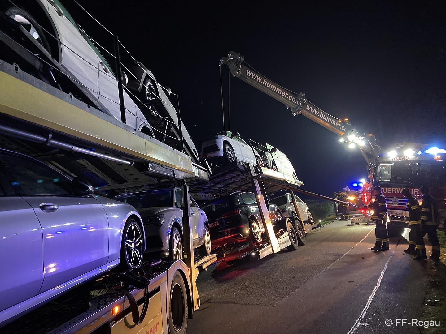 Um 02:18 wurden wir heute Samstag mit dem Text „Autotransporter steckt in der Wiese“ von der Landeswarnzentrale alarmiert.