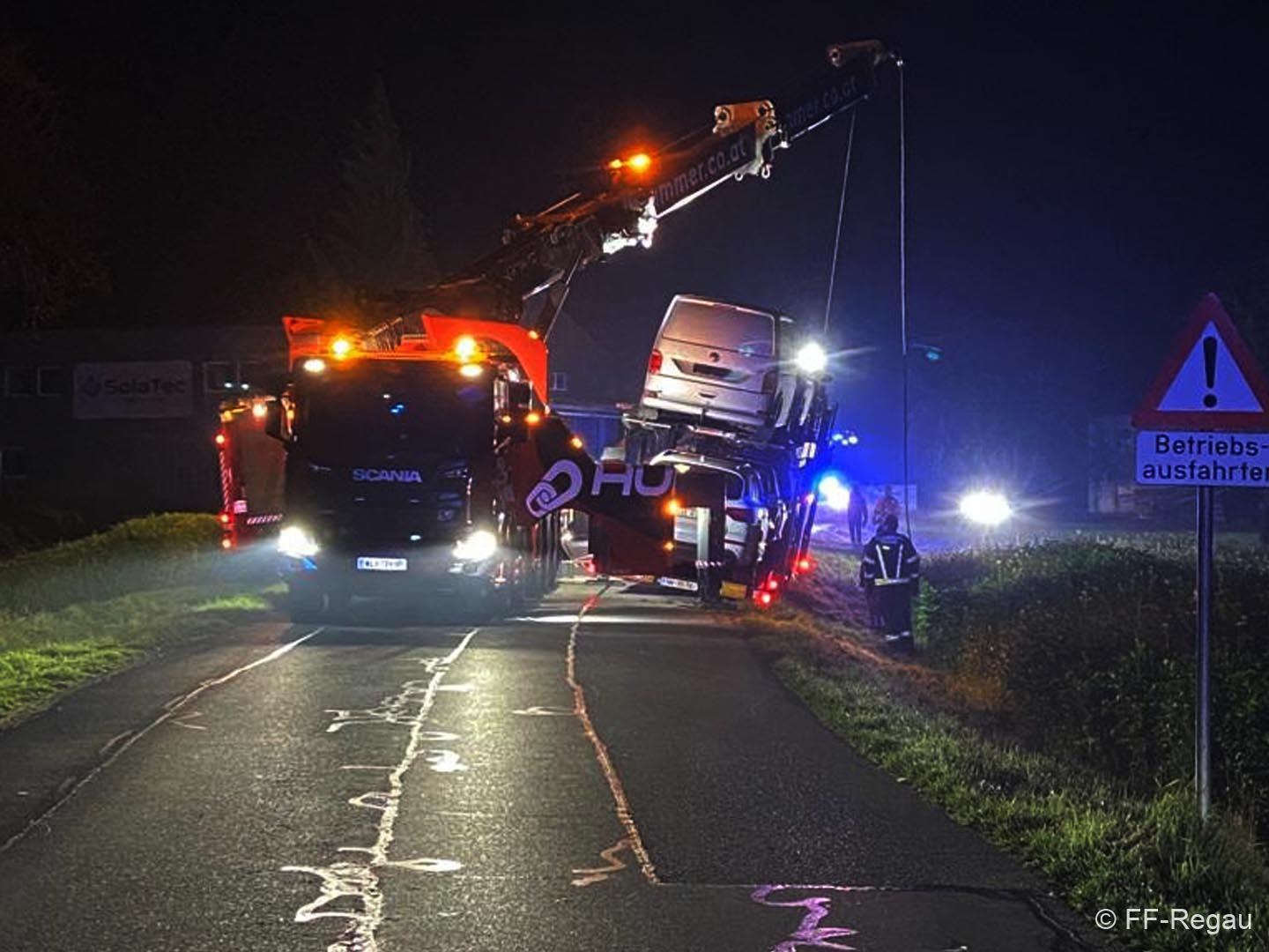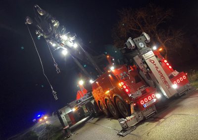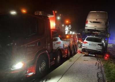 Langsam ging die Bergung vor sich, aber gegen 6 Uhr Früh war dann der Transporter wieder zurück auf der Straße.