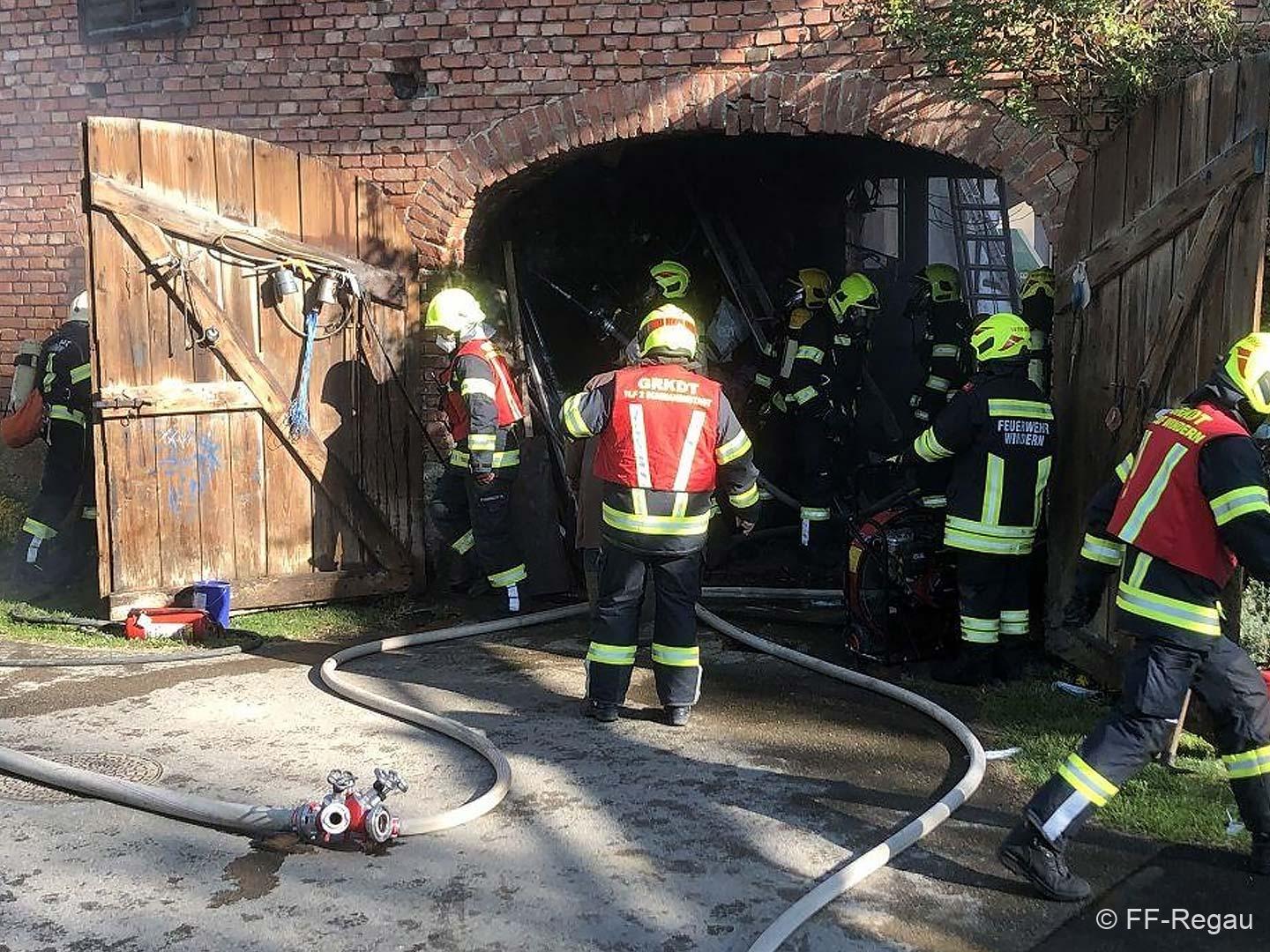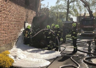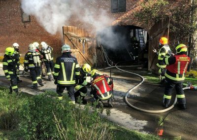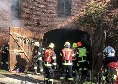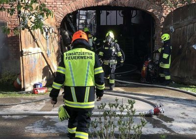 Im Bereich der Werkstätte war der Brand ausgebrochen. Durch die große Anzahl an Feuerwehren, die binnen kurzer Zeit am Einsatzort eingetroffen waren, konnte der Brand rasch unter Kontrolle gebracht und eine weitere Brandausbreitung auf andere Gebäudebereiche verhindert werden. Mittels schwerem Atemschutz wurde die Brandbekämpfung im Werkstattbereich durchgeführt. Dieser Bereich wurde dann auch noch mit Schaum geflutet.