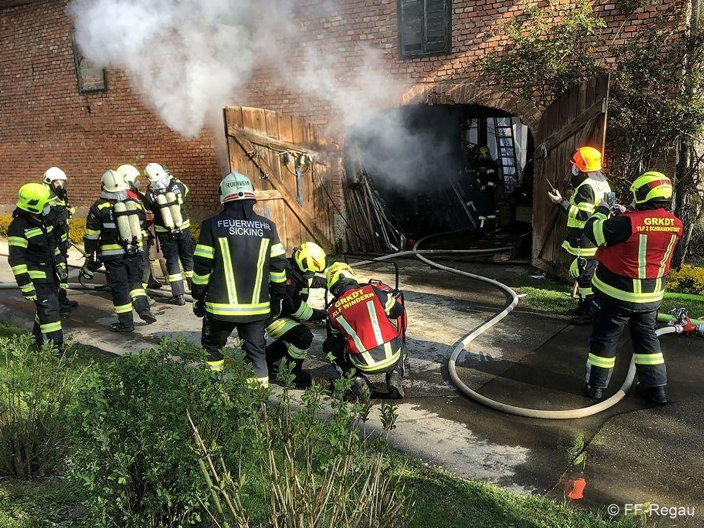 Am 23.04.20 wurden wir kurz nach 8 Uhr zu einem Brand eines landwirtschaftlichen Gebäudes in Sicking alarmiert. Die ansässige FF Sicking hat gleich nach ihrer Alarmierung, aufgrund der starken Rauchentwicklung, die Alarmstufe 2 zu diesem Brandereignis nachalarmiert. Insgesamt 12 Feuerwehren waren im Einsatz.