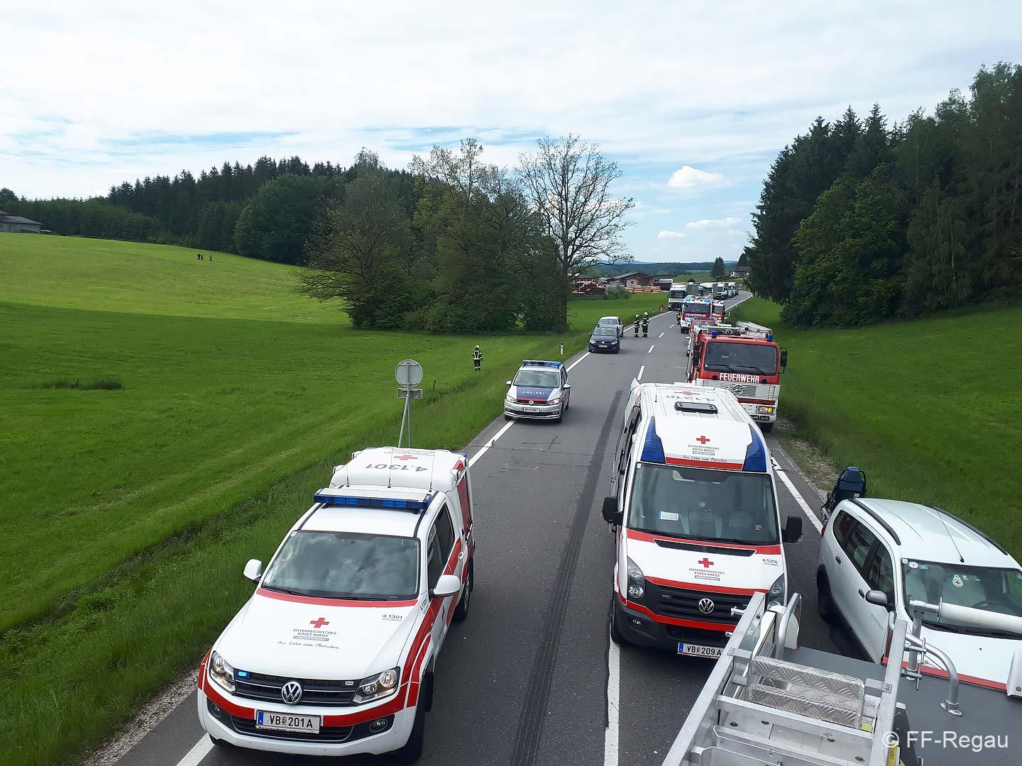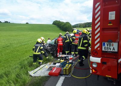 Heute um halb drei Uhr nachmittags wurden wir gemeinsam mit der FF Rutzenmoos zu einem Verkehrsunfall mit eingeklemmter Person auf der B 145 alarmiert.