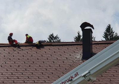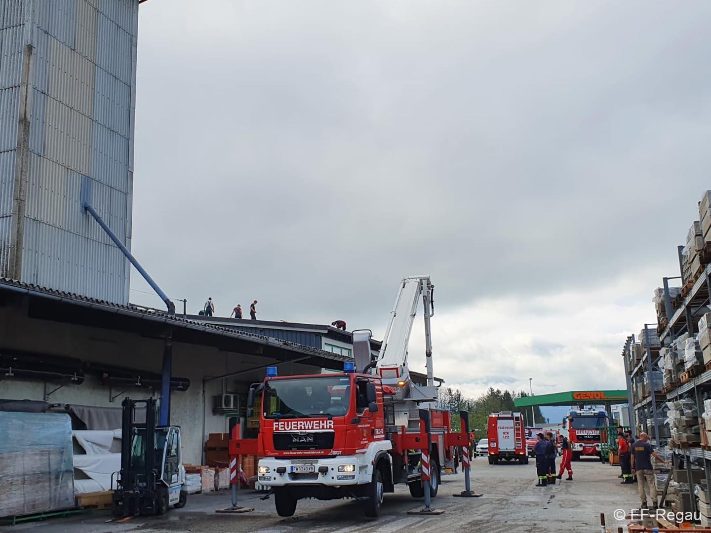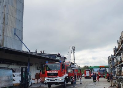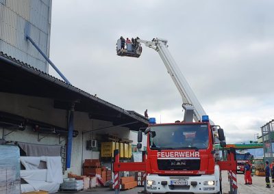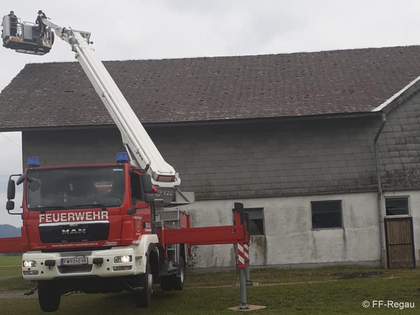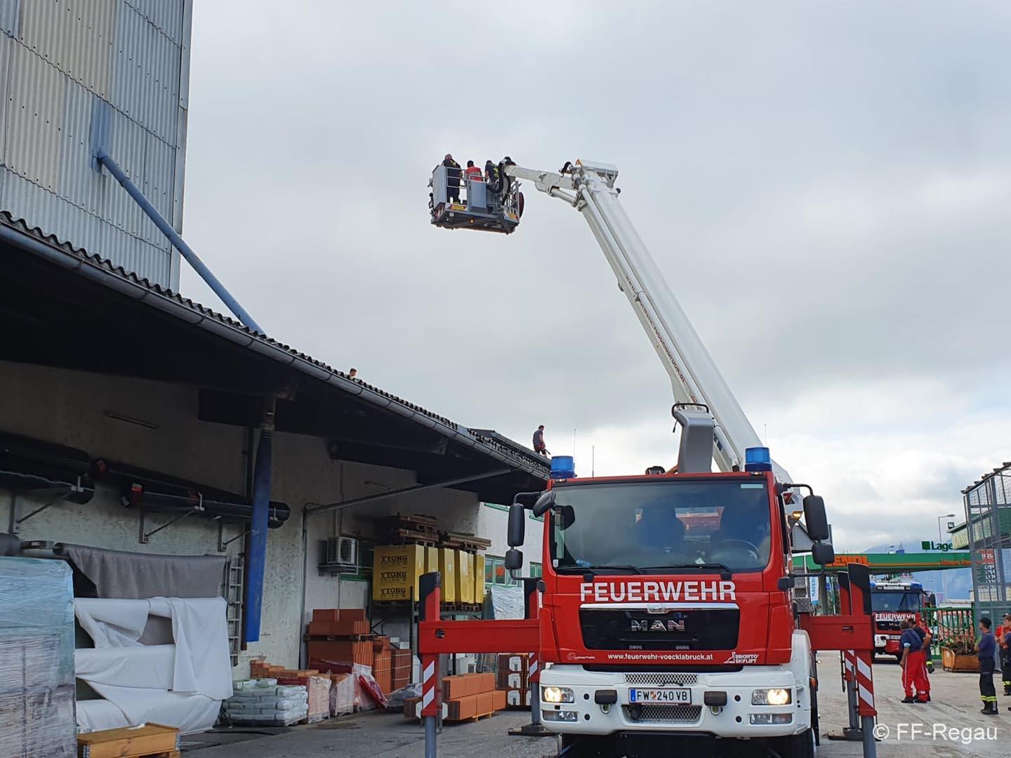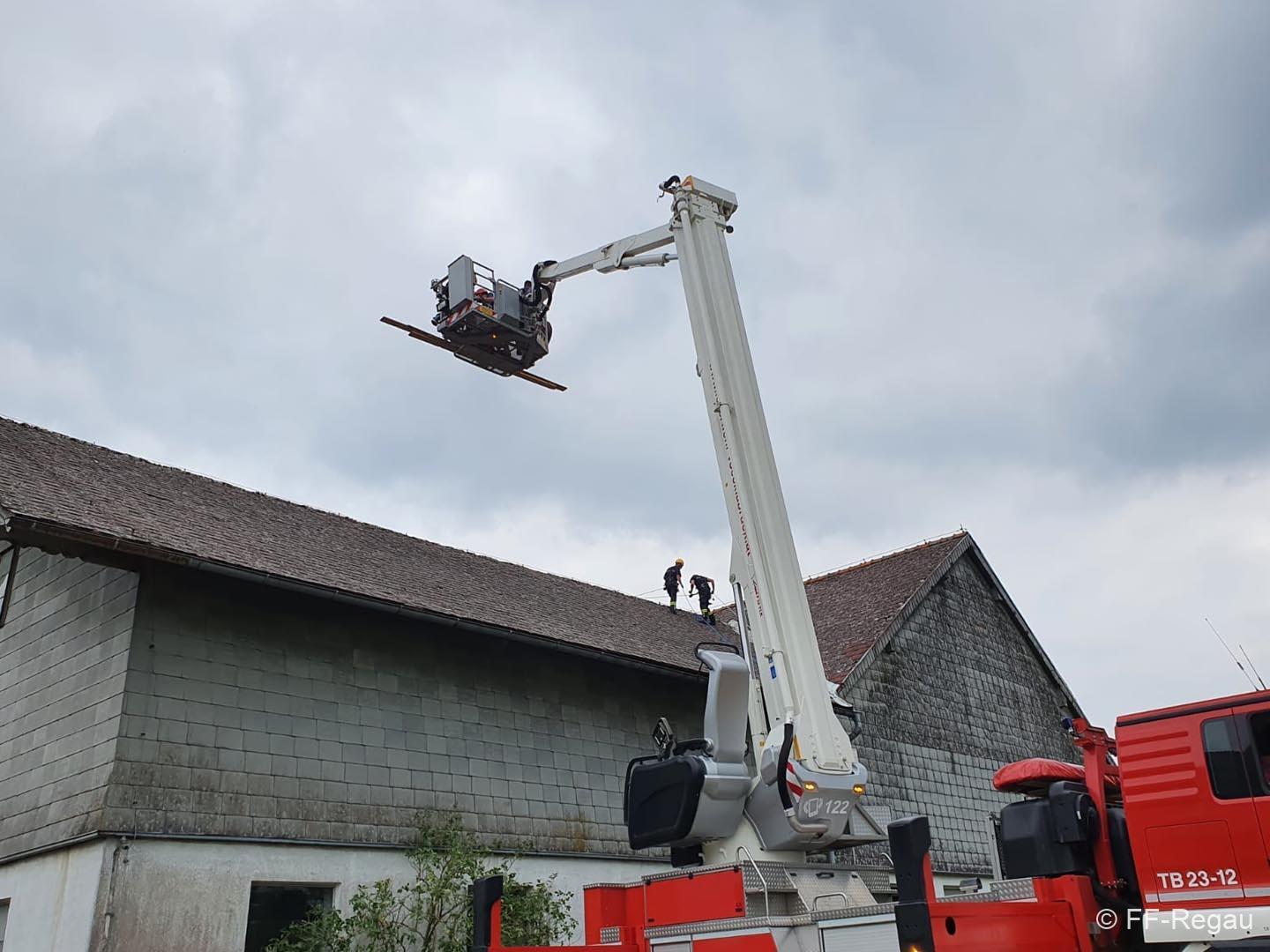 Gemeinsam mit der Mannschaft aus Vöcklabruck und anderen Wehren deckten wir einige Bauernhäuser und auch das Lagerhaus in Mondsee mit Planen ein.