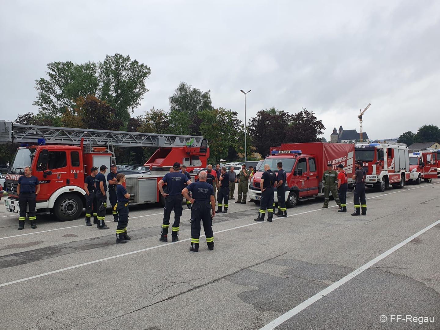 Kurz nach 7 Uhr setzte sich der Zug nach Mondsee in Bewegung, um die dortigen Einsatzkräfte bei den Aufräumarbeiten zu unterstützen.
