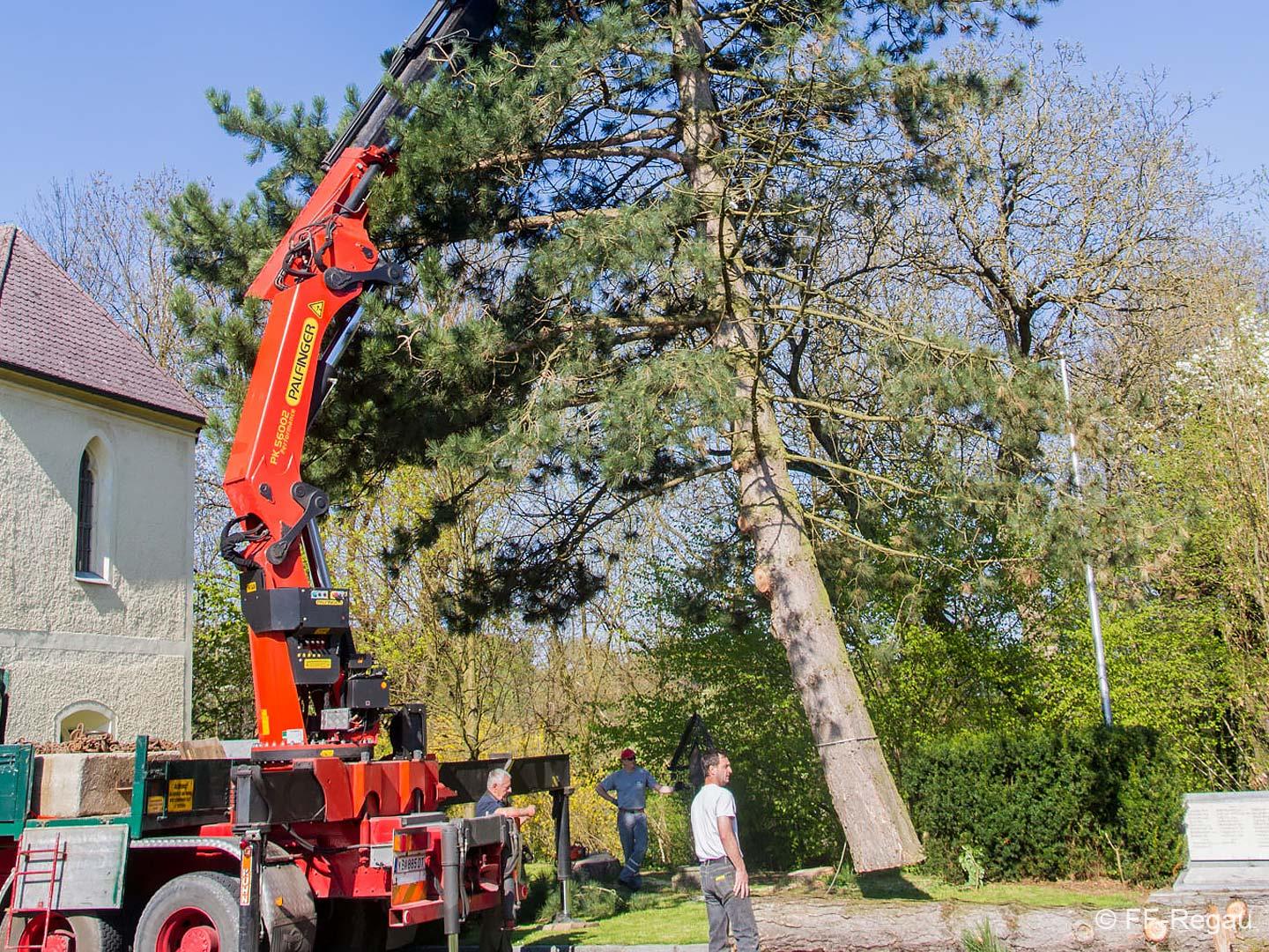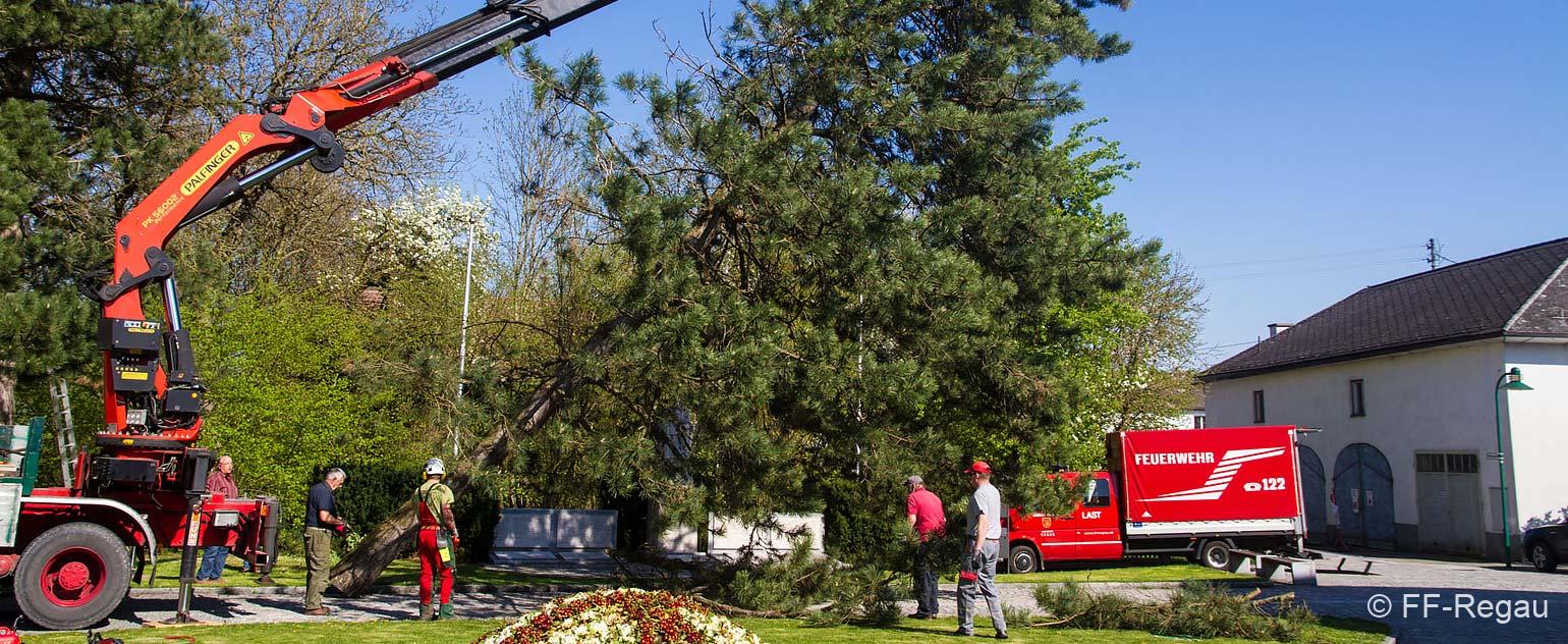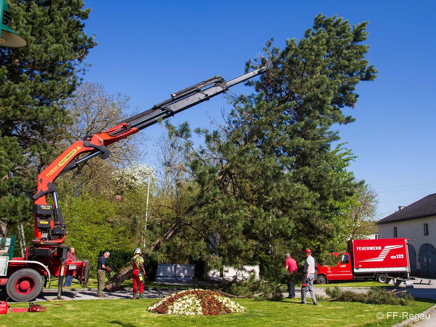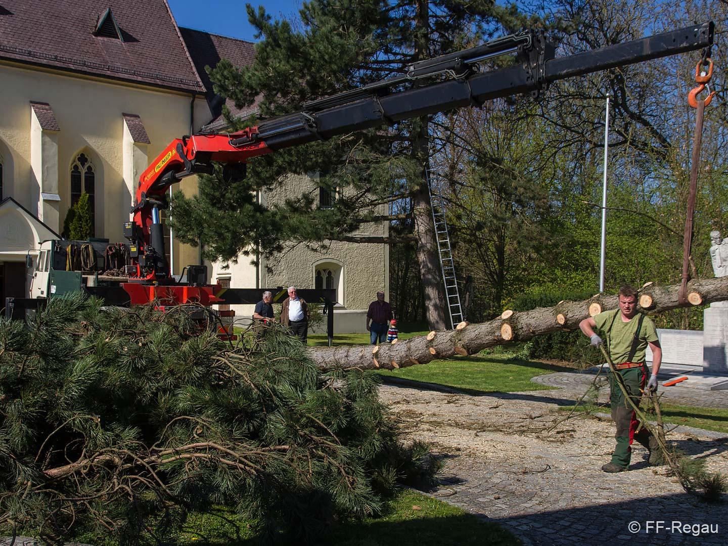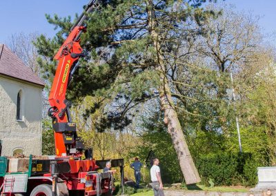 Aufgrund der Größe der Bäume war es nicht möglich diese normal zu fällen, ohne die umliegenden Häuser zu gefährden. Deswegen wurden sie unter Zuhilfenahme eines Krans entfernt! Anbei einige Fotos diese spektakulären Einsatzes.