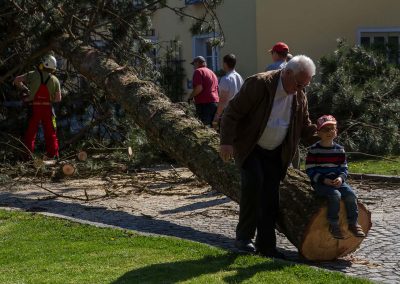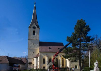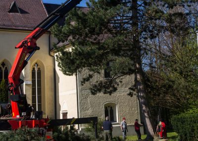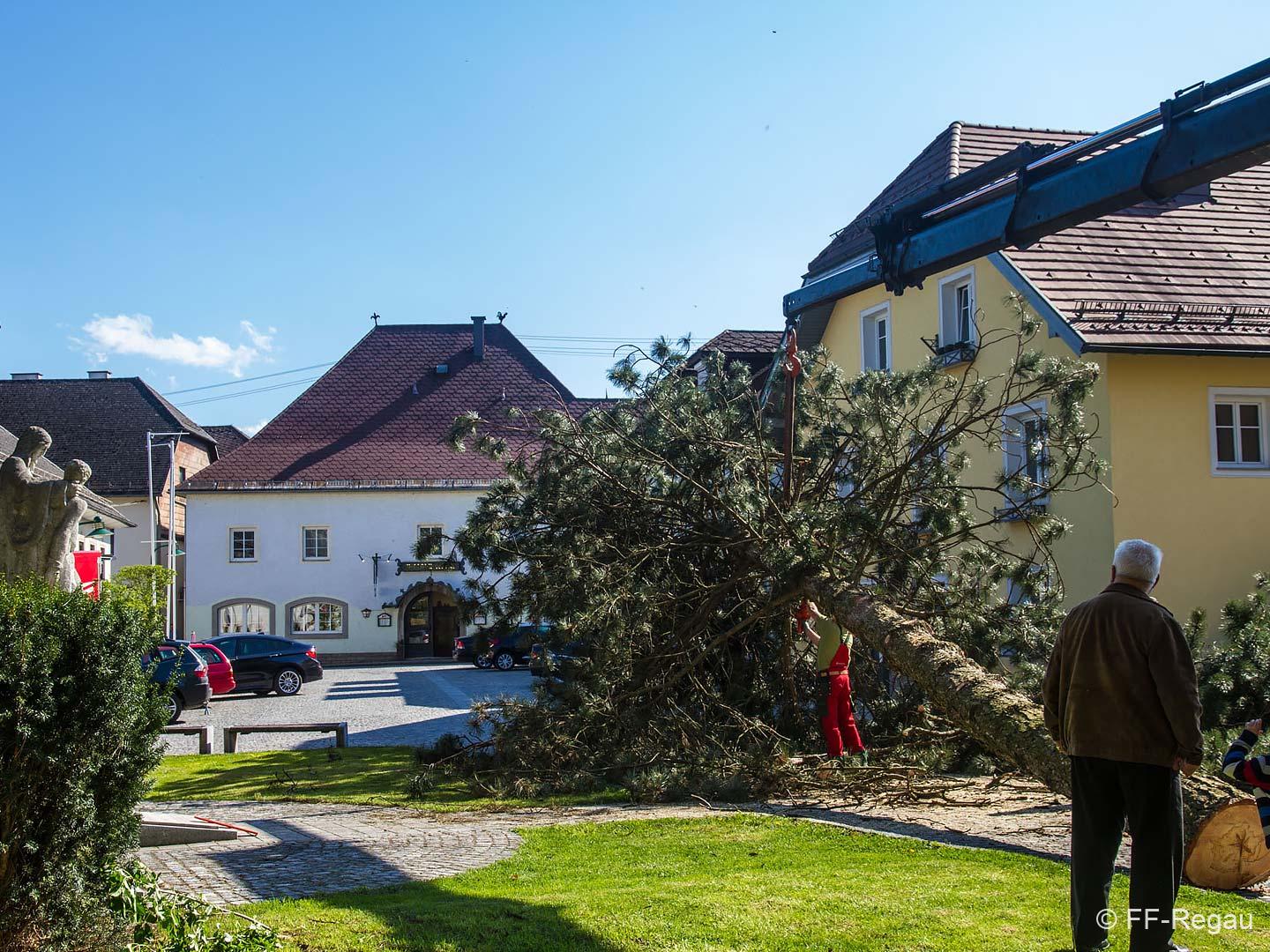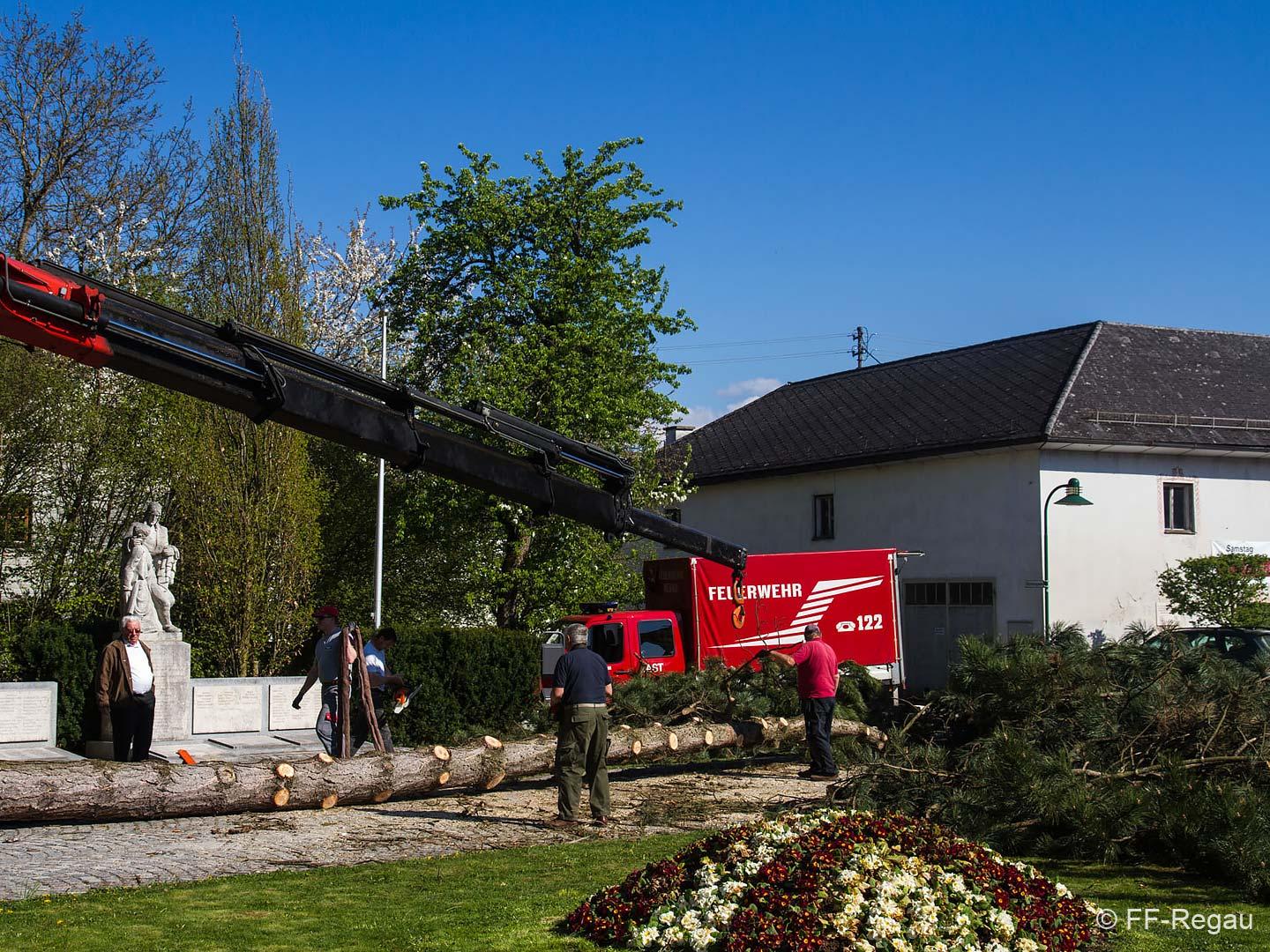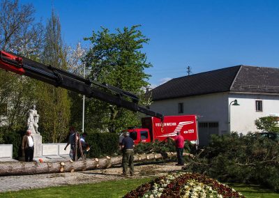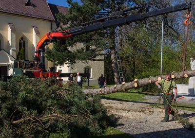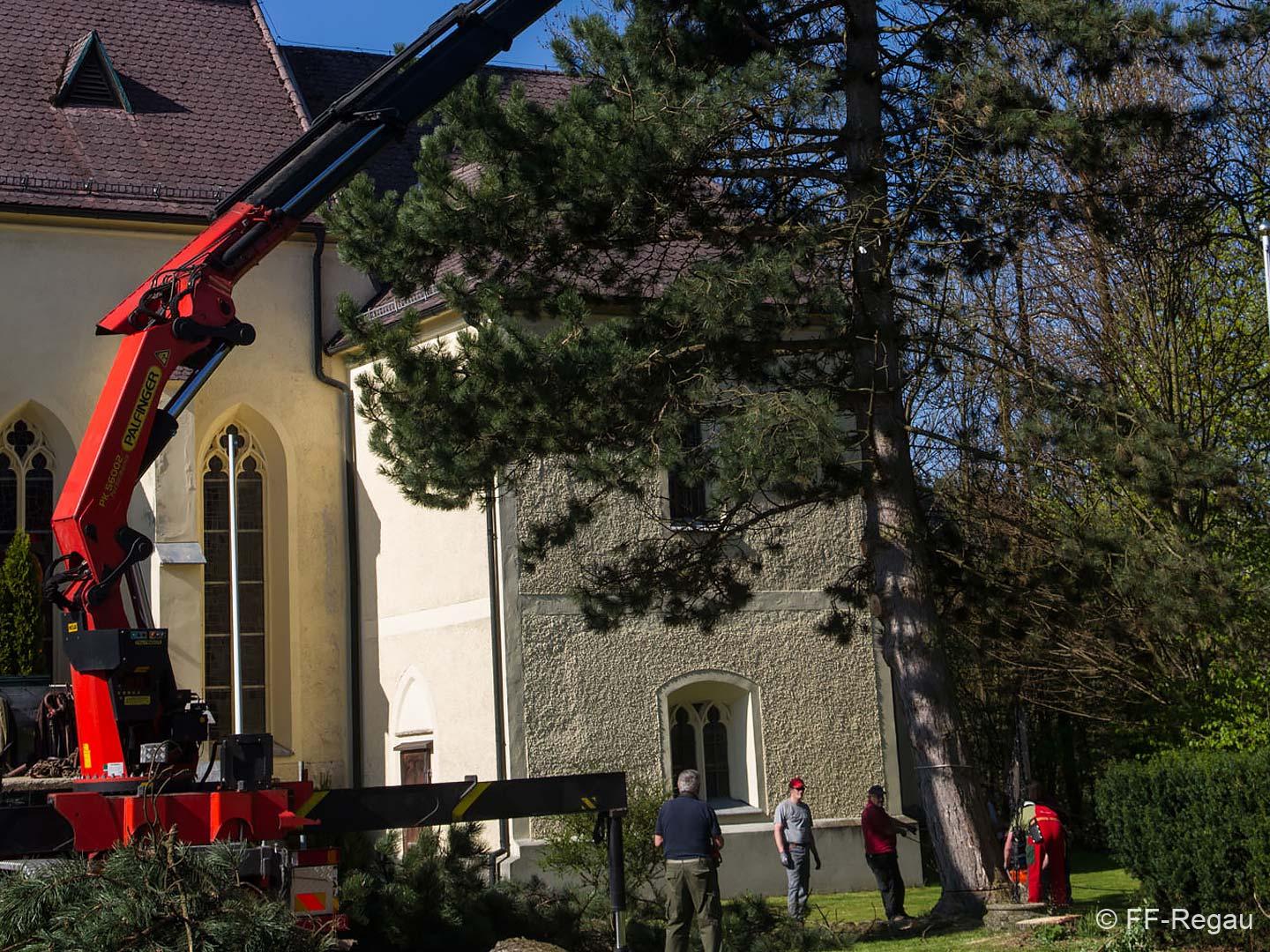 Aufgrund der Größe der Bäume war es nicht möglich diese normal zu fällen, ohne die umliegenden Häuser zu gefährden. Deswegen wurden sie unter Zuhilfenahme eines Krans entfernt! Anbei einige Fotos diese spektakulären Einsatzes.