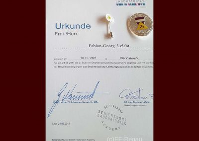 Nach der Auswertung durch die Prüfungskomission erhielt unser Kamerad das Abzeichen. Das Kommando und die Kameraden gratulieren zum bestanden Leistungsbewerb.