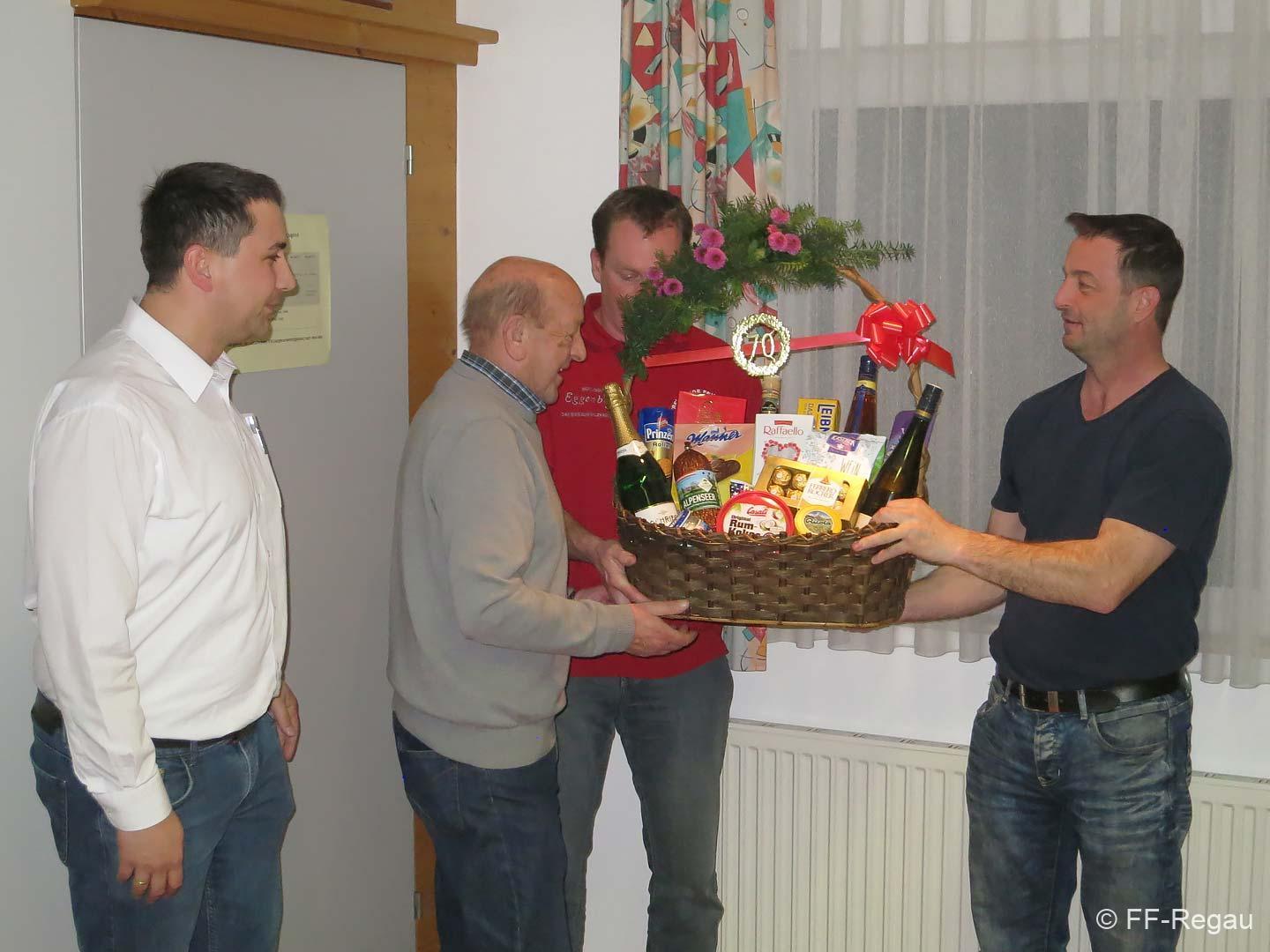 Kommandant Christoph Staudinger dankte Franz für seine Arbeit in unseren Reihen und überreichte ihm einen Geschenkskorb!