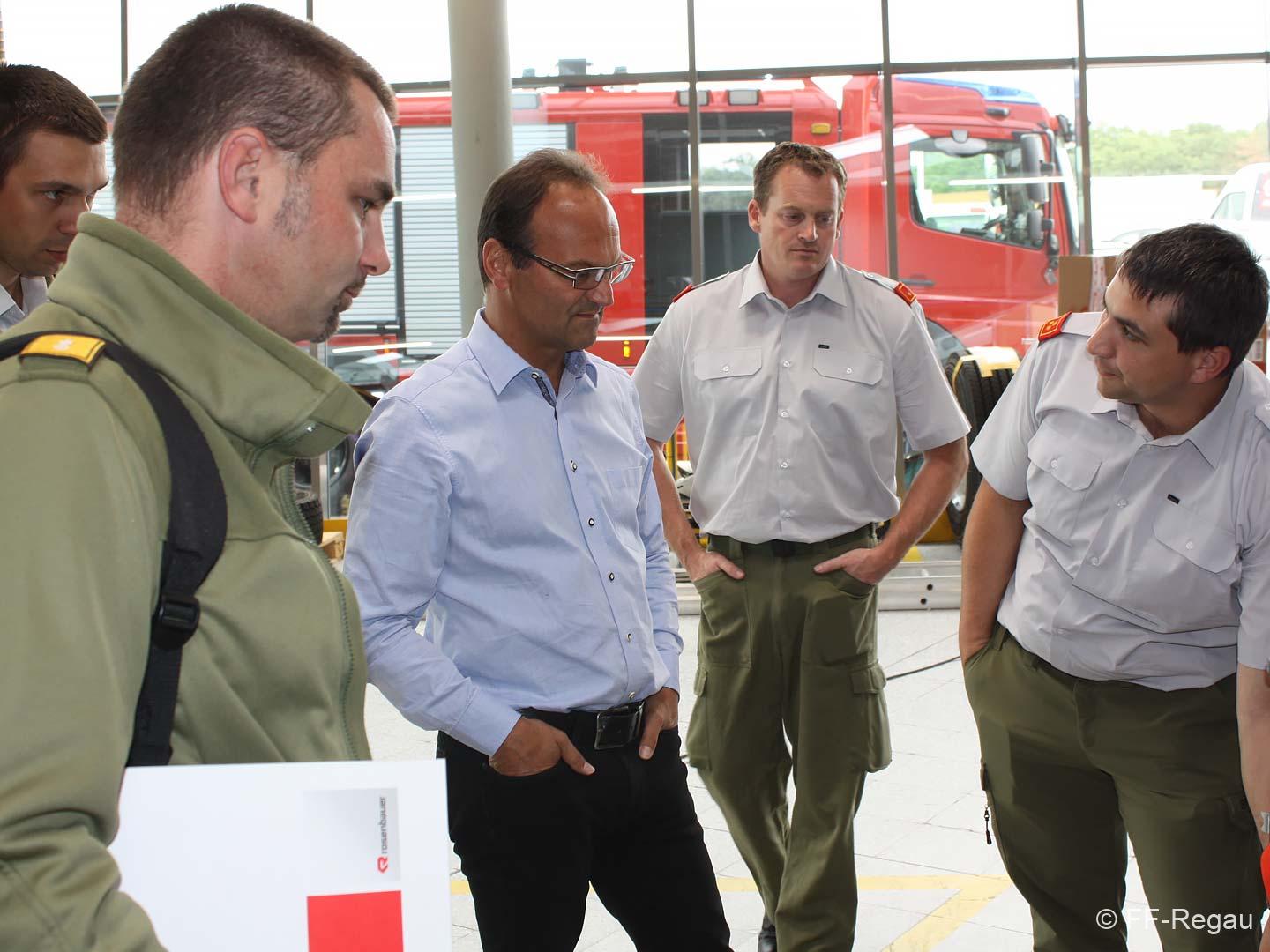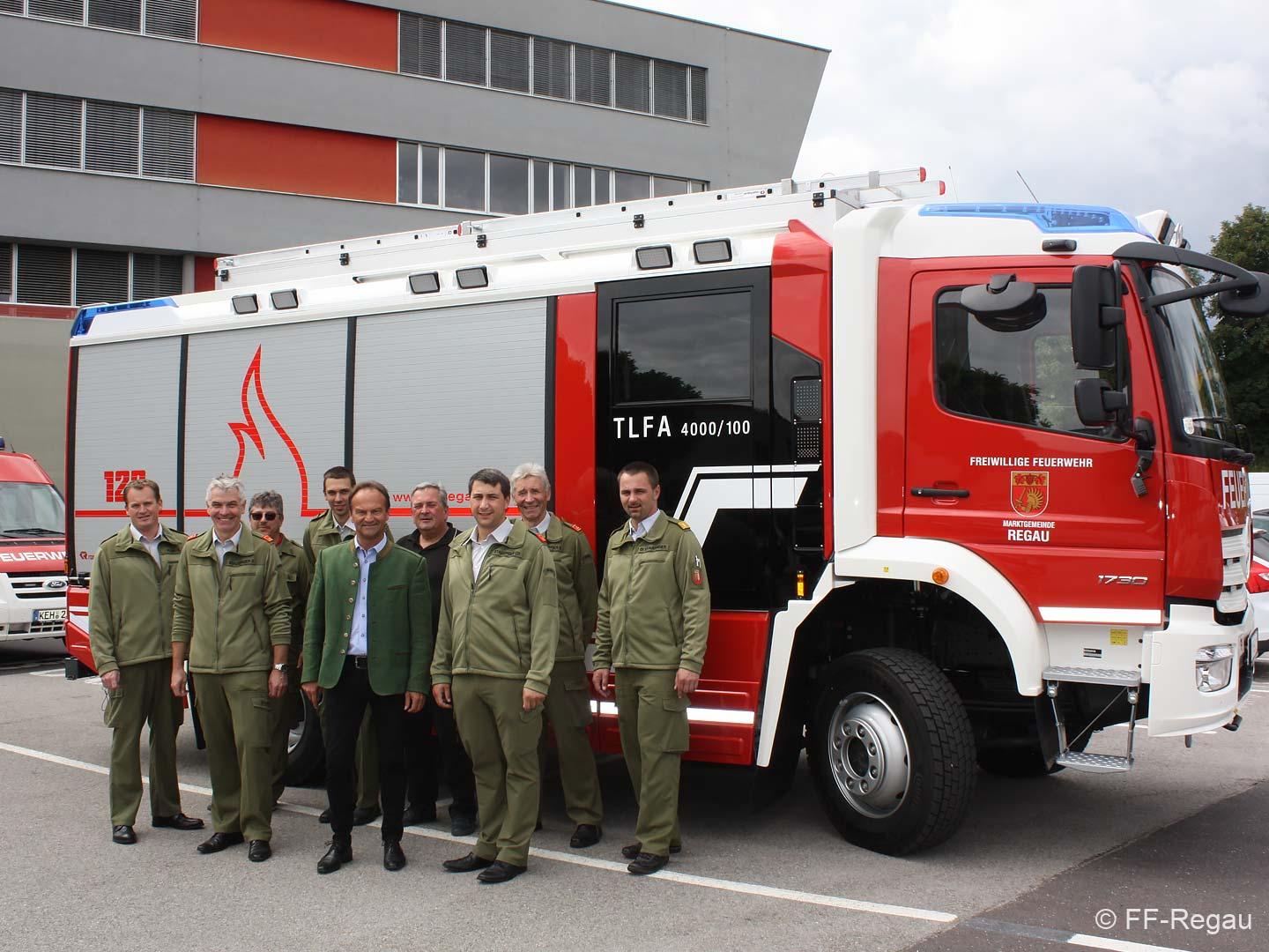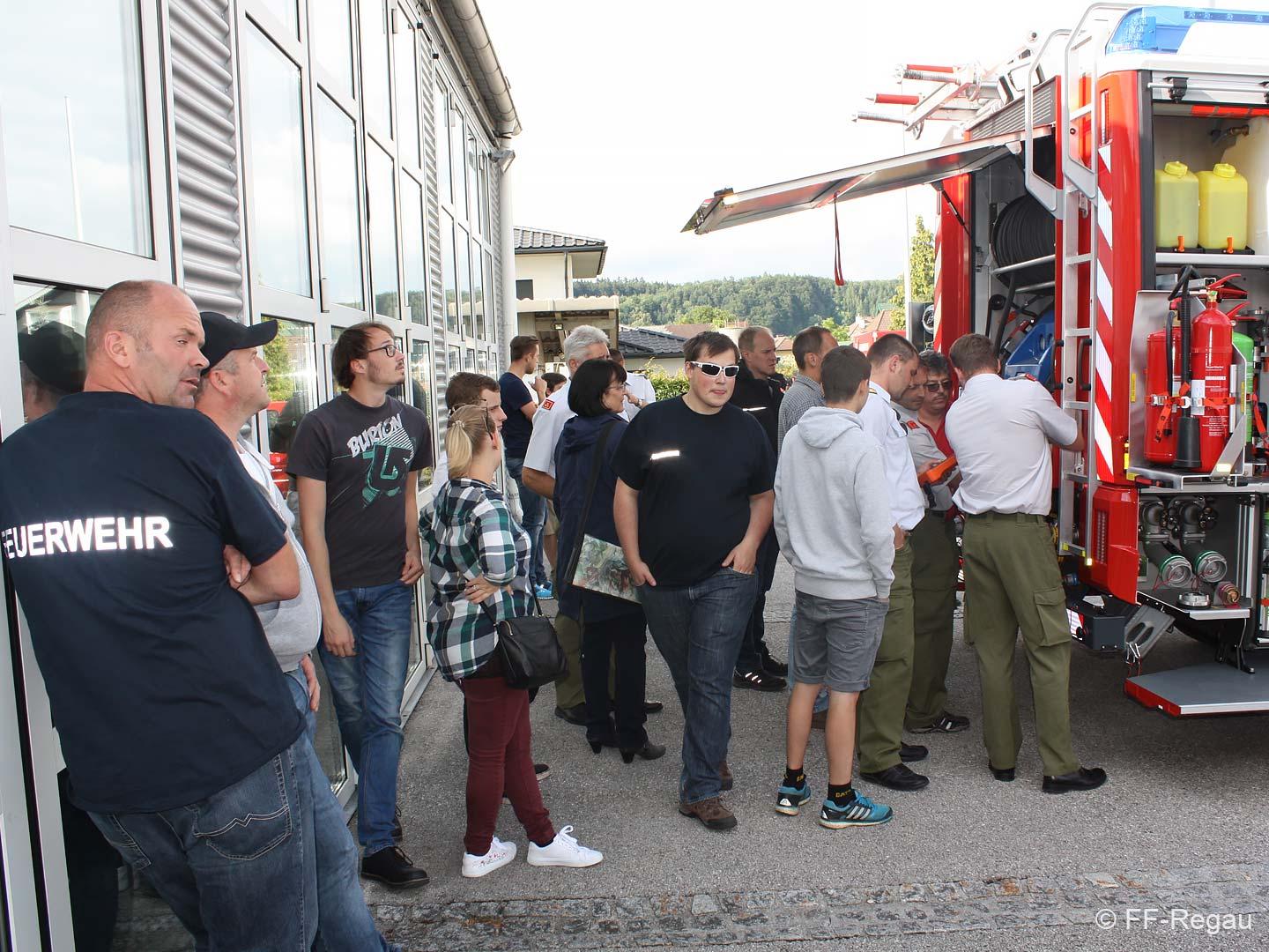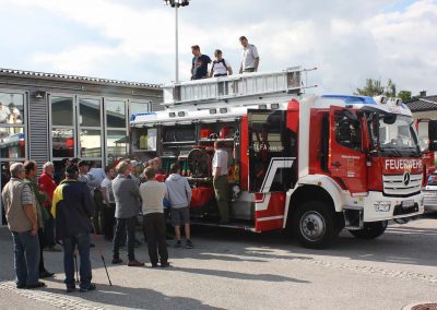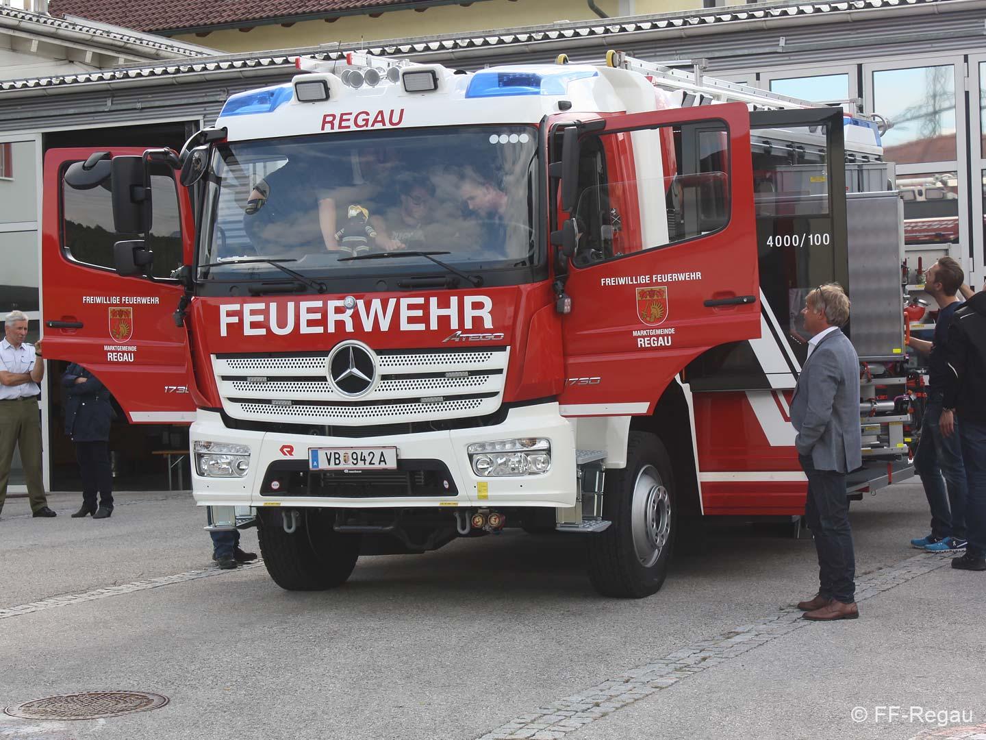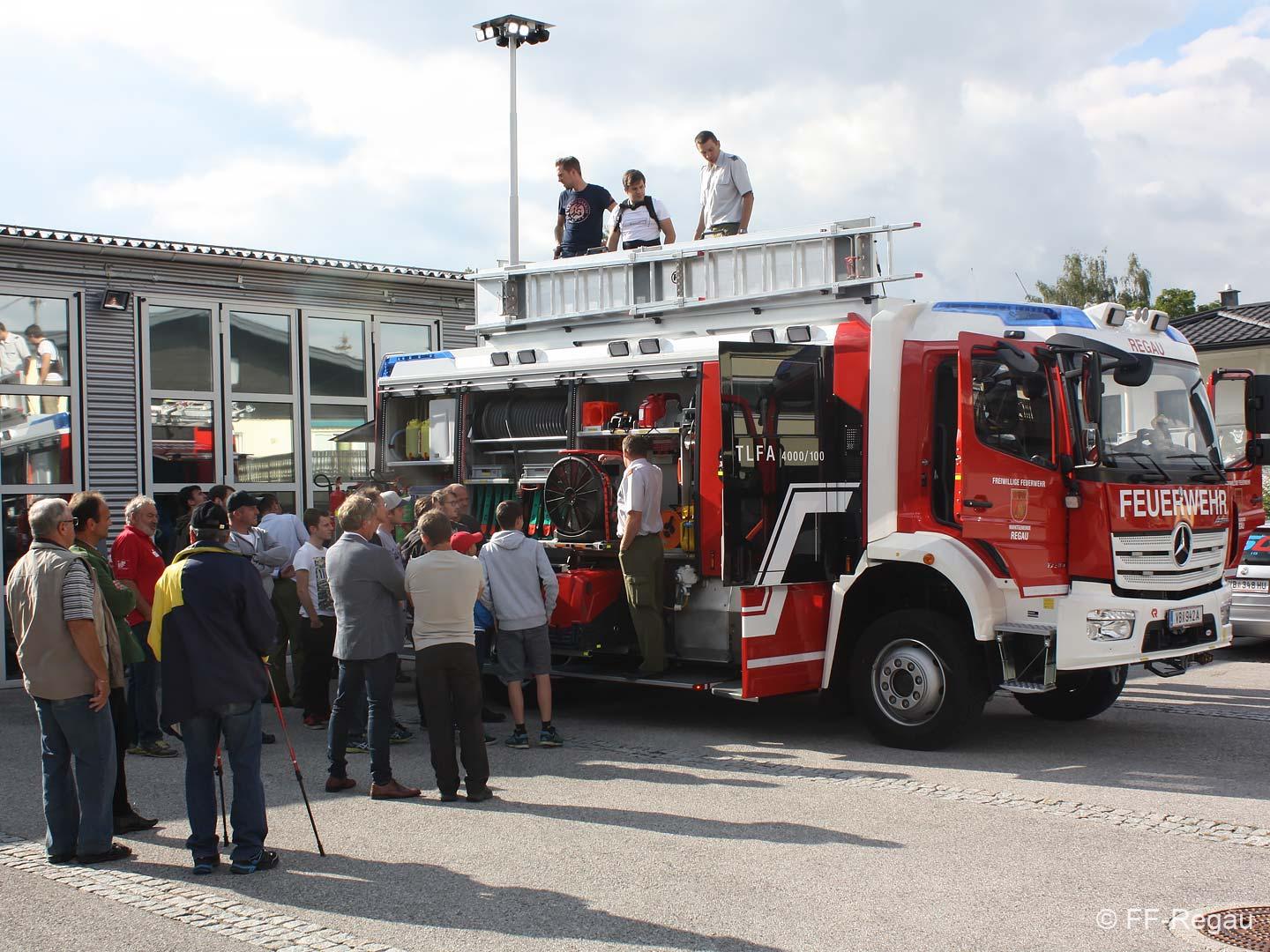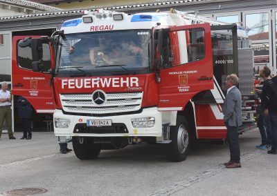 Dann ging es ab nach Regau, wo es großen Empfang gab. Viele Kameraden inspizierten sogleich das neue Fahrzeug und überzeugten sich von der modernen und zeitgerechten Ausstattung. Auch die Vertreter der Politik waren schon neugierig und ließen es sich nicht nehmen, das neue Fahrzeug noch vor der offiziellen Übergaben zu begutachten.