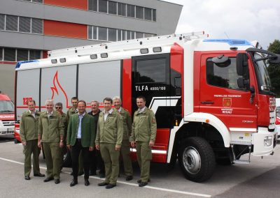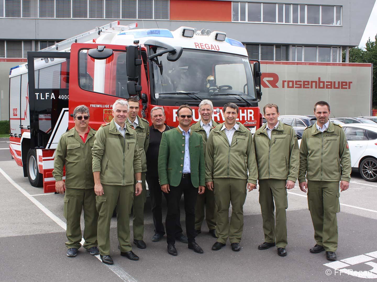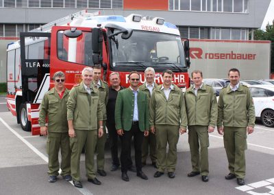 Bei der Fa. Rosenbauer in Leonding gab es noch letzte Prüfungen und Übergabemodalitäten zu erledigen. Dann erfolgte die offizielle Übergabe. Bürgermeister Peter Harringer, Kdt. HBI Christoph Staudinger und einige Kameraden vom Fahrzeugausschuss nahmen das neue Feuerwehrauto entgegen. Bei Allen war die Freude darüber sehr groß. Monate- bzw. jahrelange Arbeit war ja vorangegangen, damit das neue Auto so ausschaut und dasteht, wie es jetzt der Fall ist.