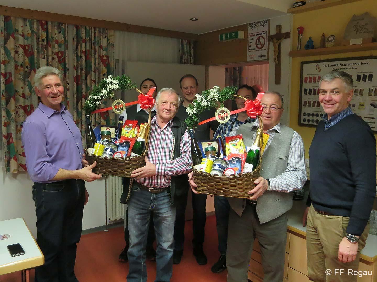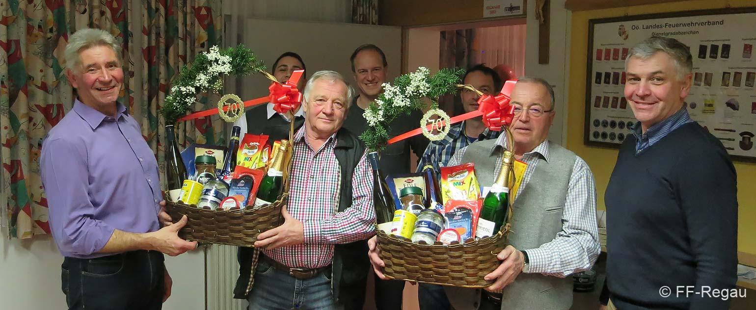 Für all diese Leistungen und für die unzählig aufgebrachten Stunden dankte Ihnen Kommandant Staudinger sehr herzlich und überreichte ihnen je einen Geschenkkorb. Danach wurde mit den Jubilaren noch gemütlich in großer Runde gefeiert.