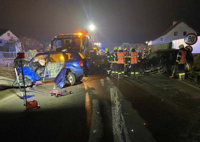 Nach der Personenbergung wurden die beiden Unfallfahrzeuge von einem Abschleppunternehmen weggebracht.