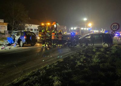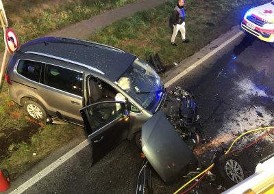 Zu einem Verkehrsunfall mit eingeklemmter Person wurden wir und die FF Rutzenmoos heute kurz vor halb fünf Uhr abends alarmiert. Auf der B 145 gab es kurz vor der Agerbrücke aus bisher ungeklärter Ursache einen Frontalzusammenstoß von zwei Fahrzeugen. Ein Fahrzeuglenker war bei unserem Eintreffen noch eingeklemmt. In Zusammenarbeit der beiden Wehren und dem Notarzt wurde der Eingeklemmte, unter Einsatz von hydraulischen Rettungsgeräten, schließlich relativ rasch aus dem Fahrzeug befreit. Danach wurde der Verunglückte vom Notarzt erstversorgt und in das Salzkammergutklinikum Vöcklabruck eingeliefert. Die weiteren Unfallbeteiligten und verletzten Personen wurden vom Roten Kreuz versorgt und ebenfalls ins Klinikum nach Vöcklabruck eingeliefert.