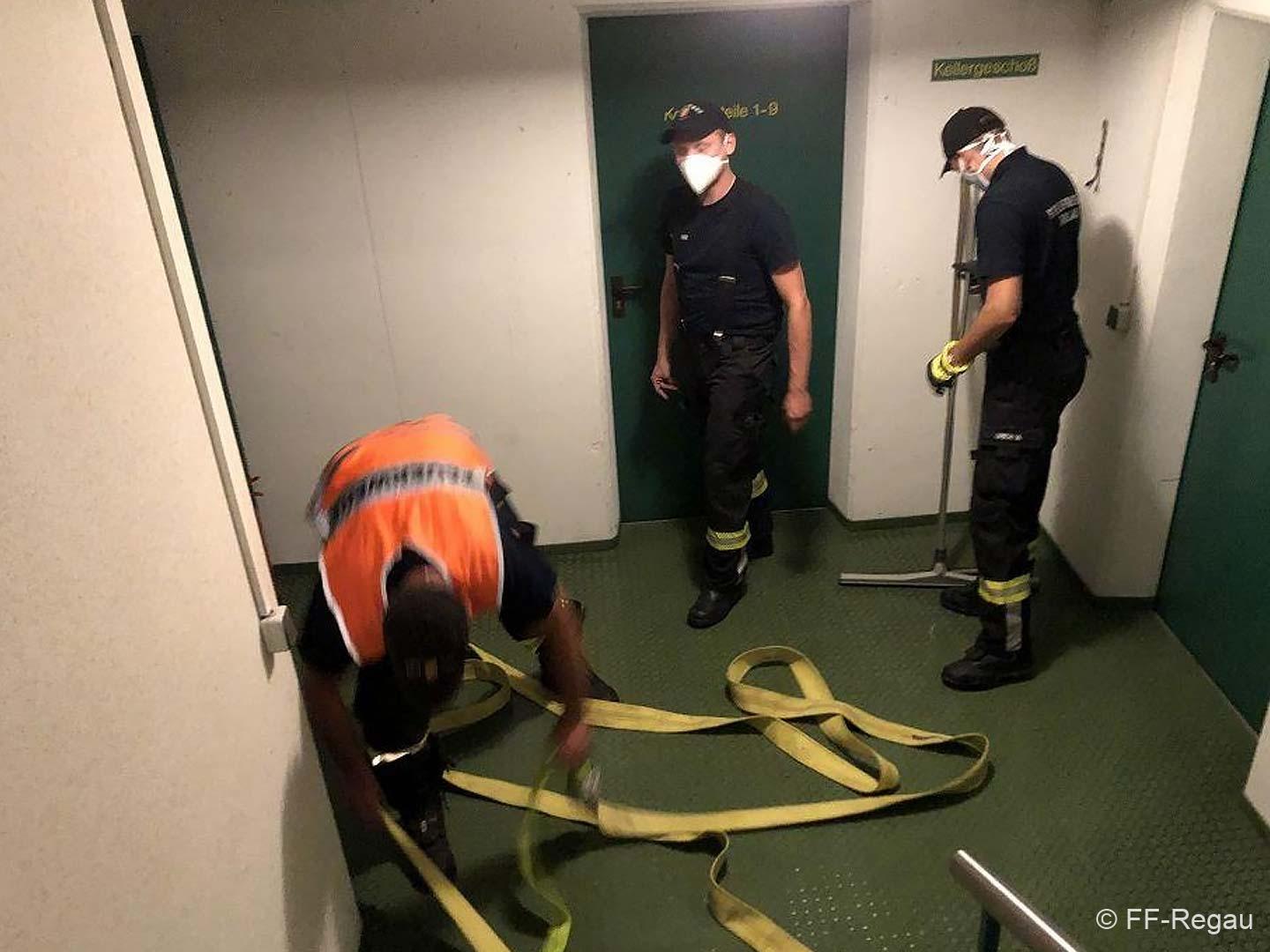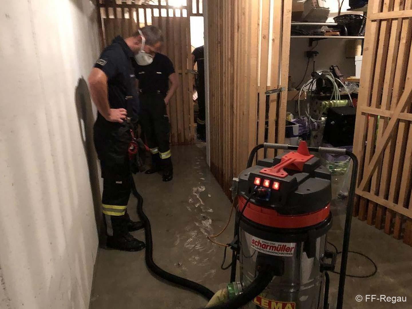 Während der Aurfäumarbeiten von diesem Einsatz erreichte uns die Meldung eines Wasserschadens in einer Wohnhausanlage in Schalchham. Unser Pumpen- und LAST-Fahrzeug machten sich auch hier gleich auf den Weg zum Einsatzort. Dort wurde festgestellt, dass der Keller aufgrund eines Wasserrohrbruches unter Wasser stand. Mit dem Wassersauger wurde das Wasser abgesaugt und so der Keller großteils trocken gemacht.
