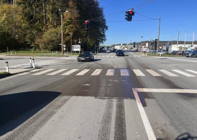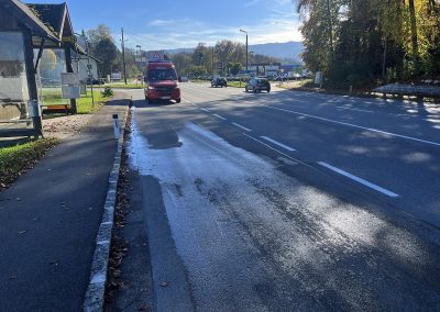 Wir reinigten die Straße im gesamten betroffenen Bereich und entfernten Reste des Ladegutes.