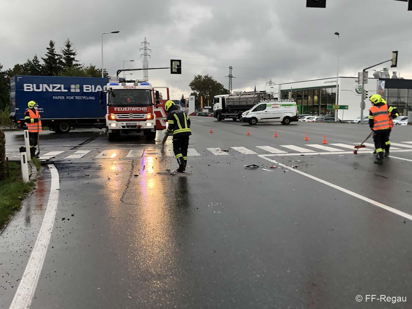 Wie schon vor fünf Tagen wurden wir heute kurz vor 16 Uhr erneut zu Aufräumarbeiten nach einem Verkehrsunfall alarmiert. Wieder hat sich auf der B 145, im Bereich der ampelgeregelten Ostkreuzung, ein Verkehrsunfall ereignet.