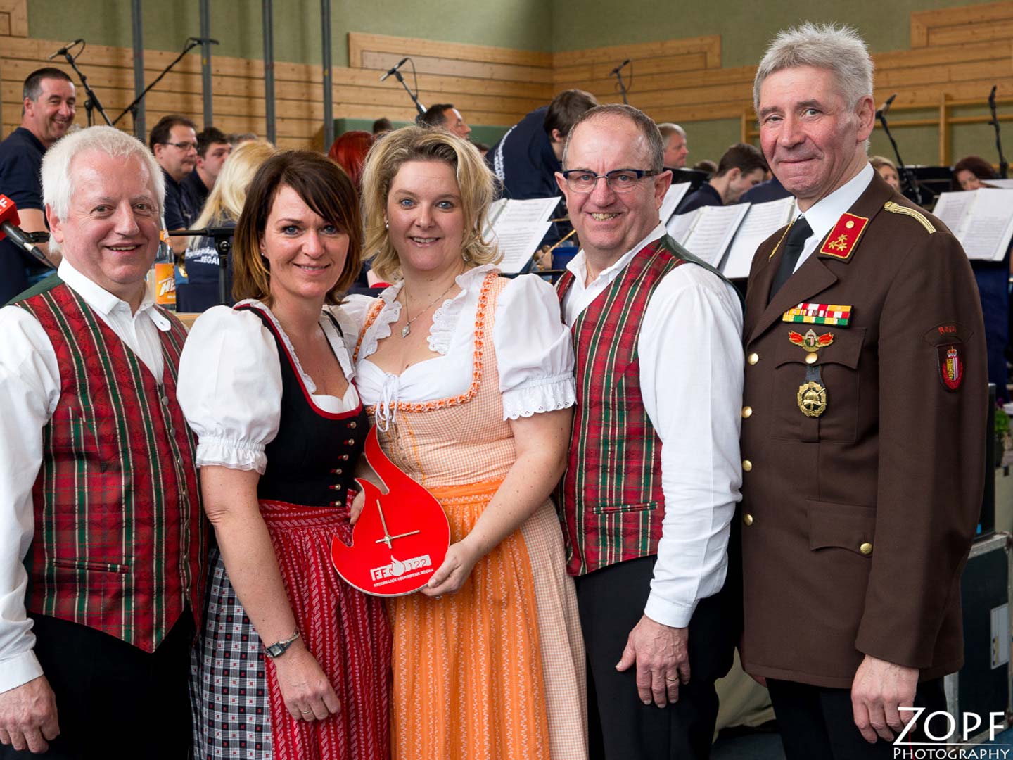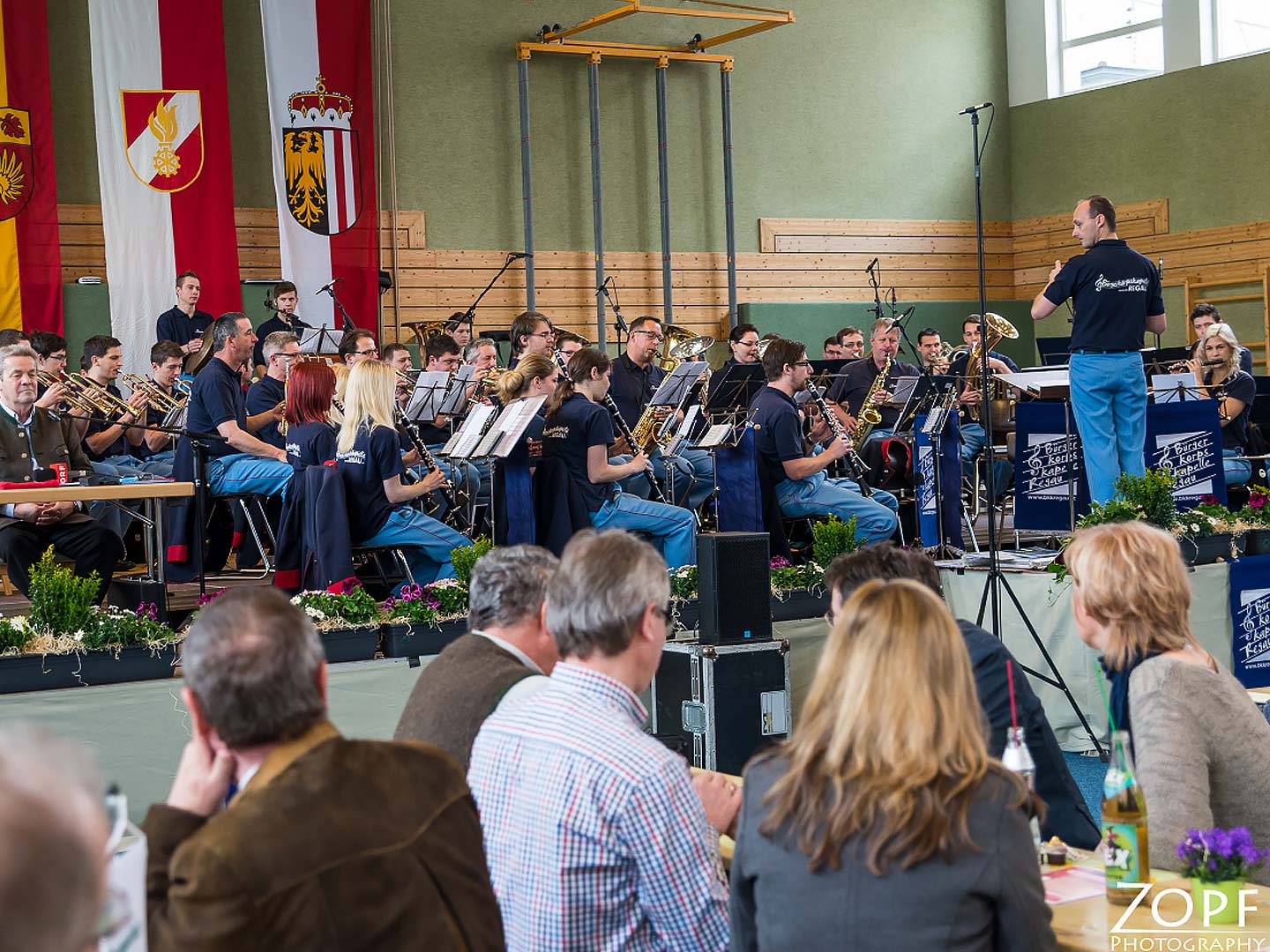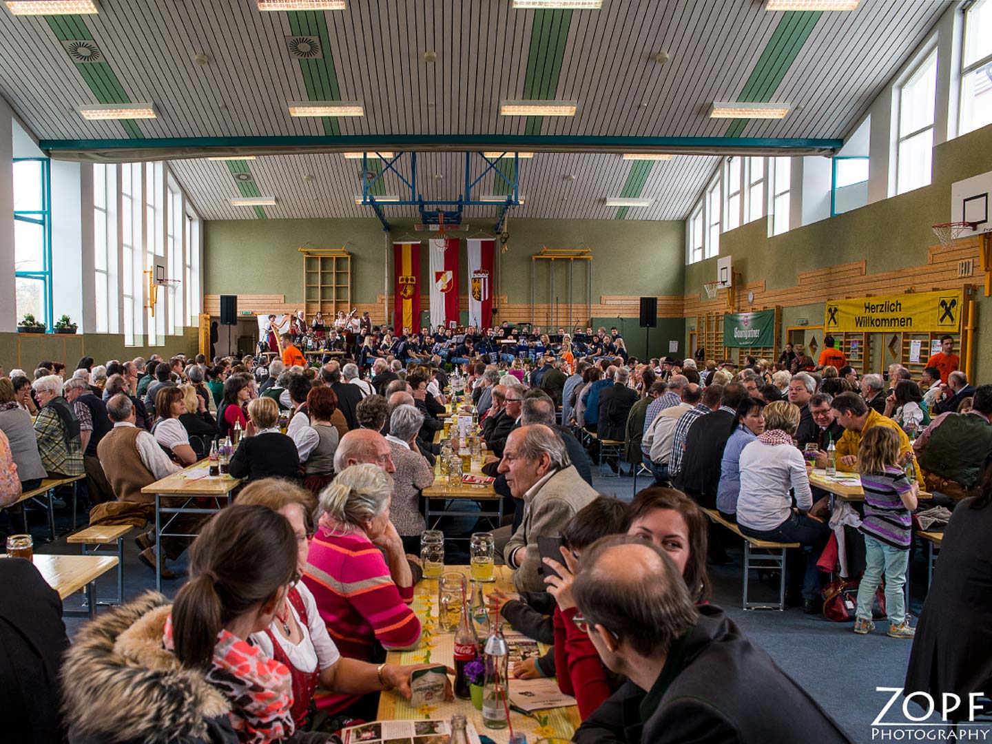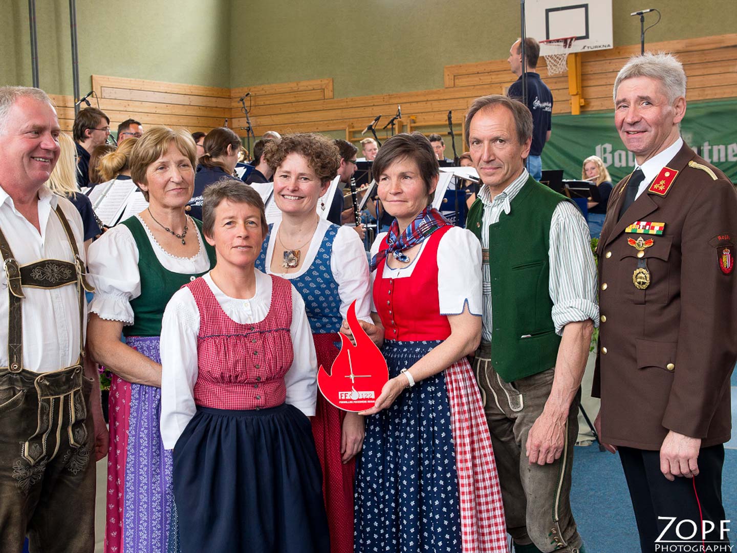 Ein Fest für Regau! Die Freiwillige Feuerwehr Regau hatte eingeladen, und sie kamen: Jung und Alt, Kleinkinder, Mütter, Väter, Seniorinnen und Senioren; was in Regau Rang und Namen hat, fand sich in der zum Festsaal umgestalteten Turnhalle der Neuen Mittgelschule Regau ein.