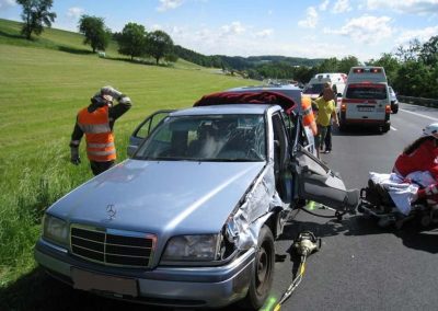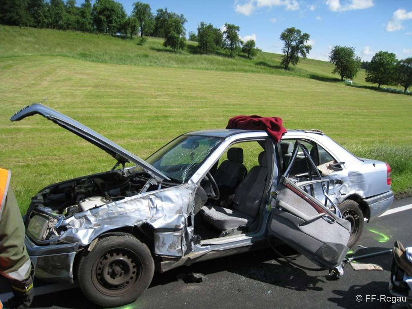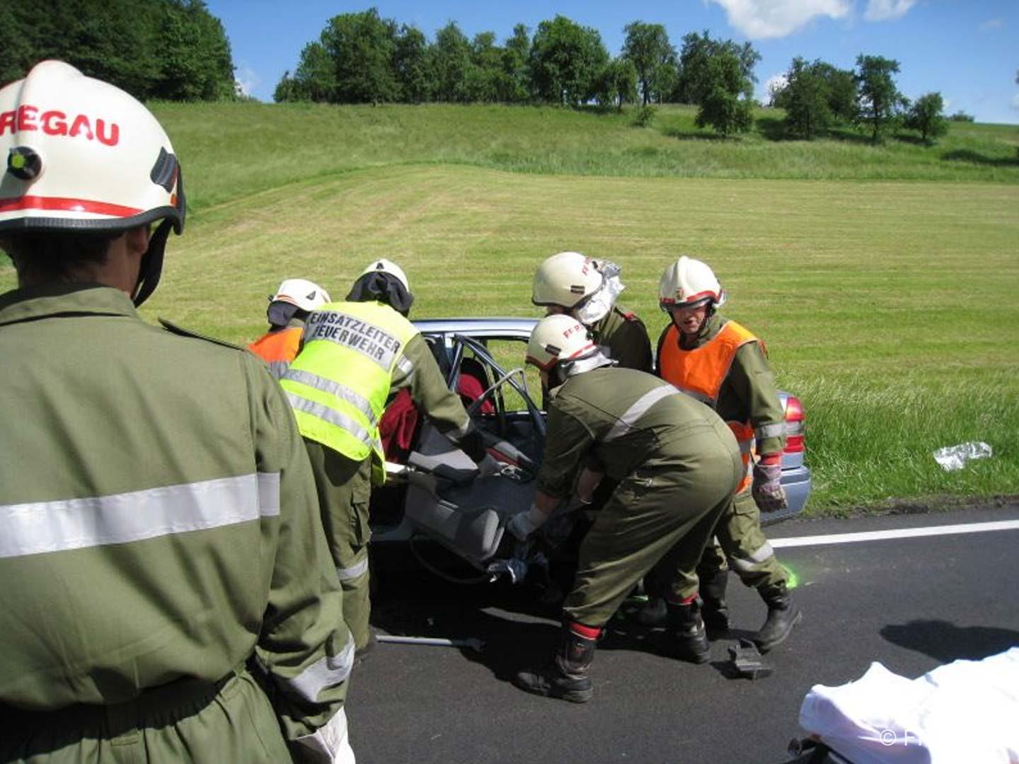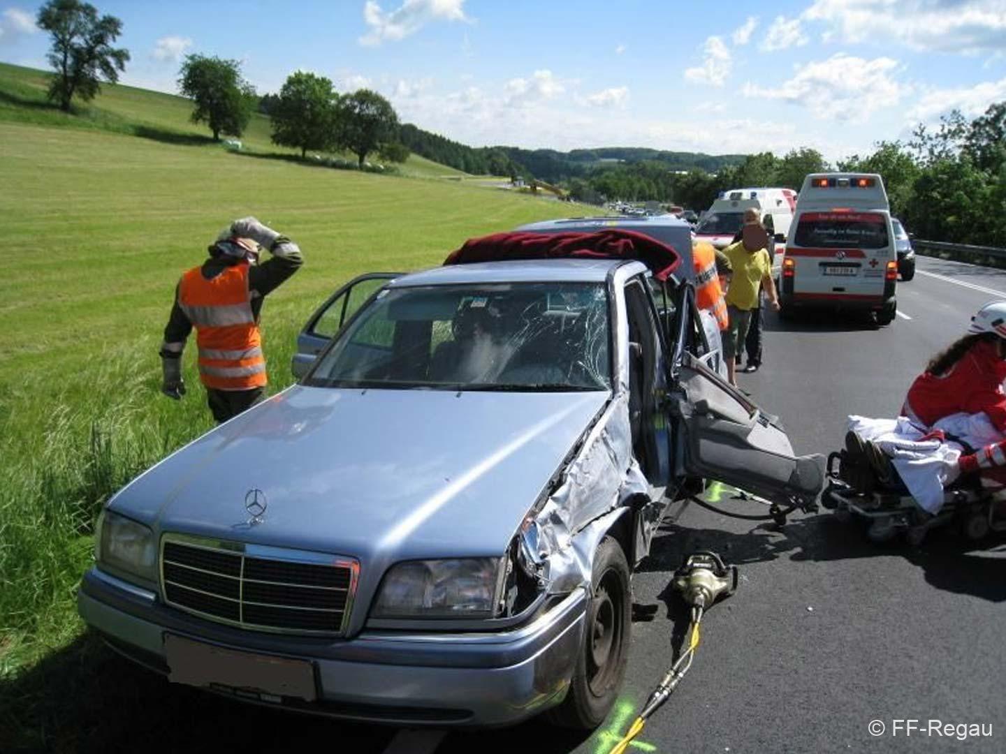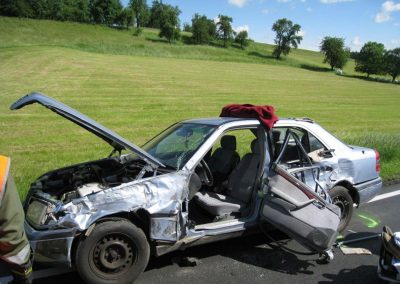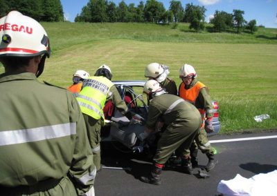 Auf der B145 waren kurz vor der Autobahnauffahrt (aus Richtung Gmunden kommend) zwei Fahrzeuge zusammengestoßen. Der Lenker eines dieser Fahrzeuge musste mit Zuhilfenahme des hydraulischen Bergegerätes aus dem Auto geborgen werden.