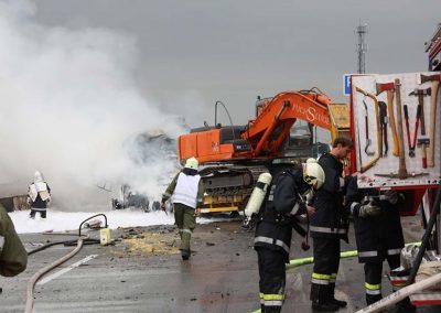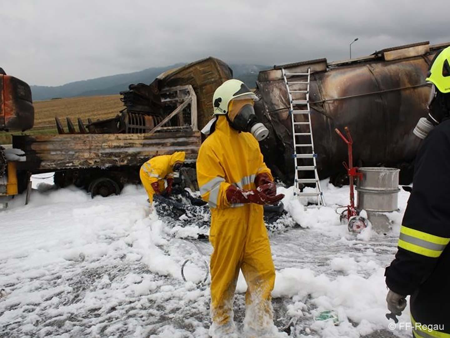 Erst im Zuge der Lösch- und Aufräumarbeiten konnte das geladene Gut genau festgestellt und die davon ausgehenden Gefahren den Einsatzkräften mitgeteilt werden. Für die Einsatzkräfte direkt vor Ort bestand höchste Gefahr.